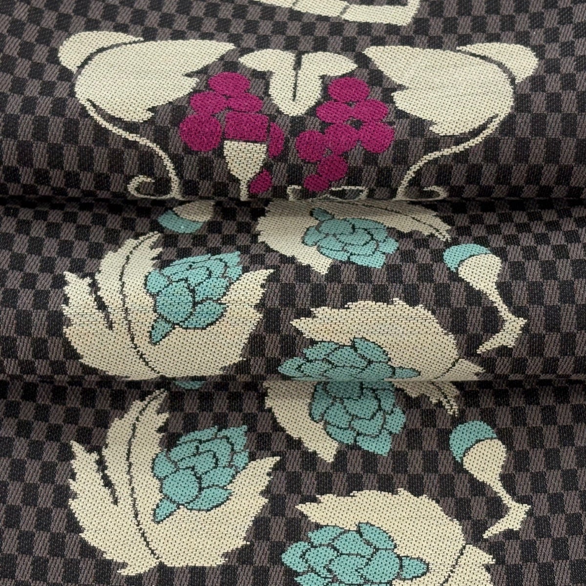 半幅帯 名品 葡萄 グラス 灰紫 正絹