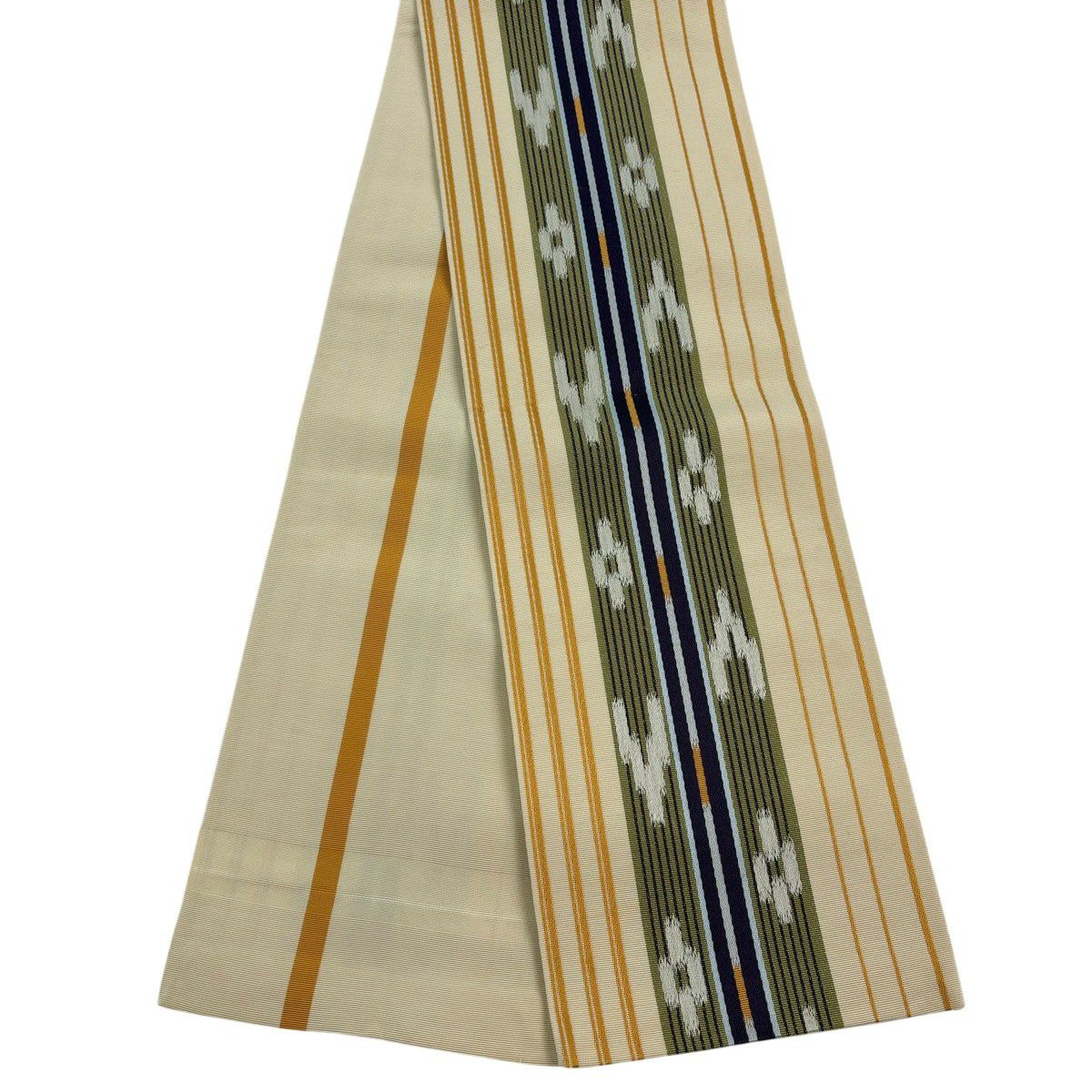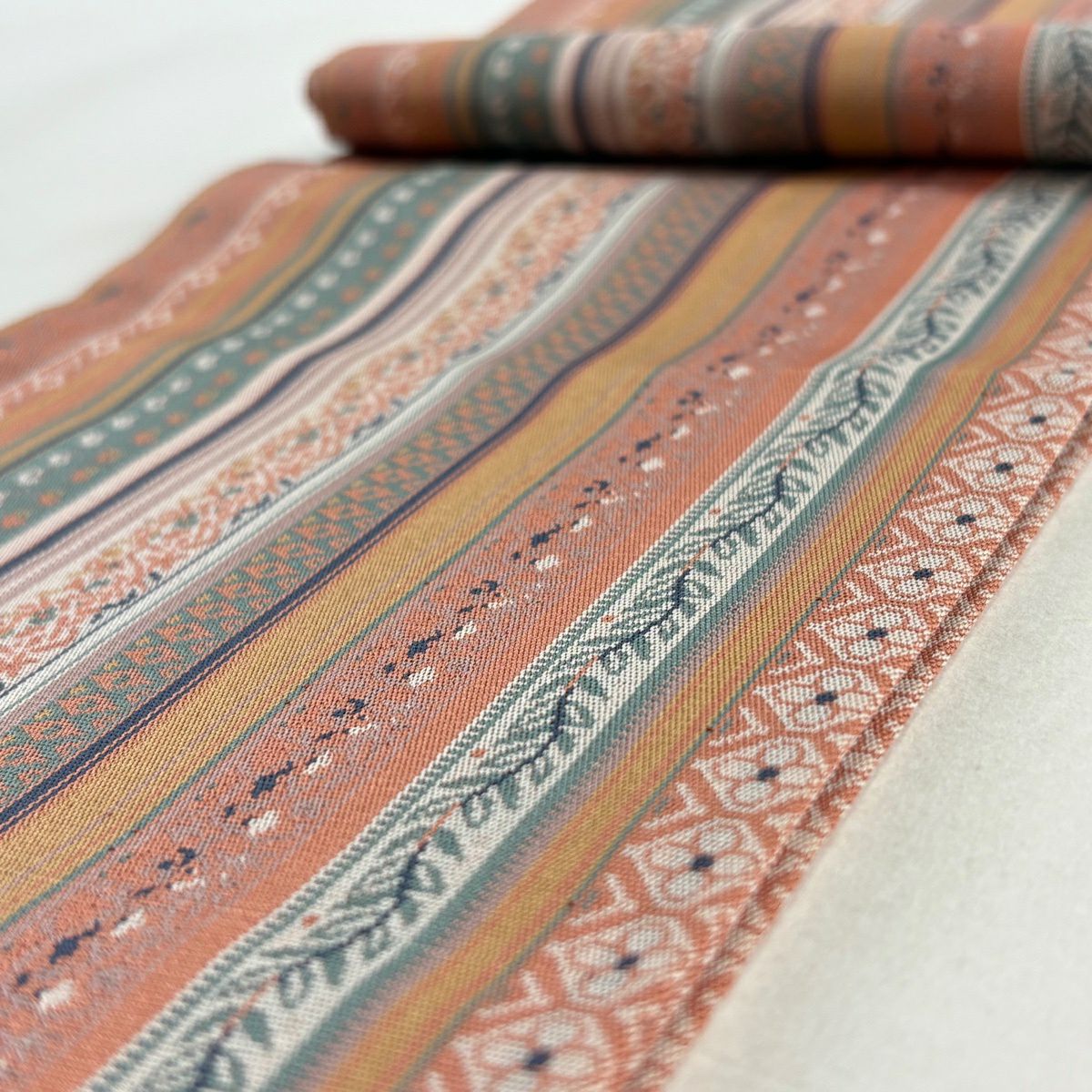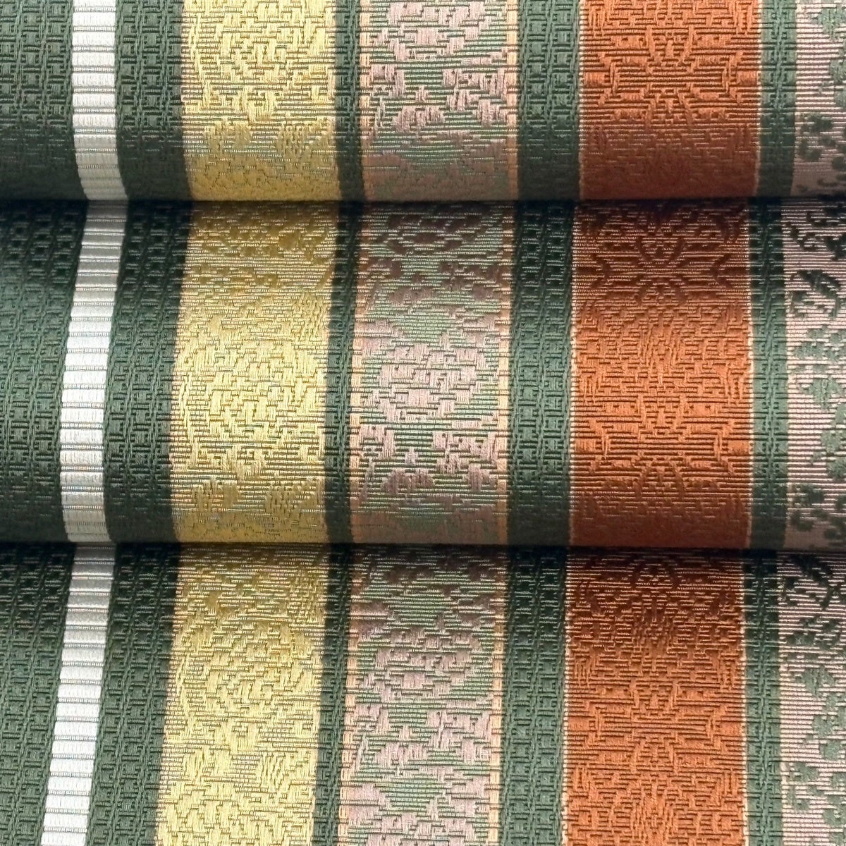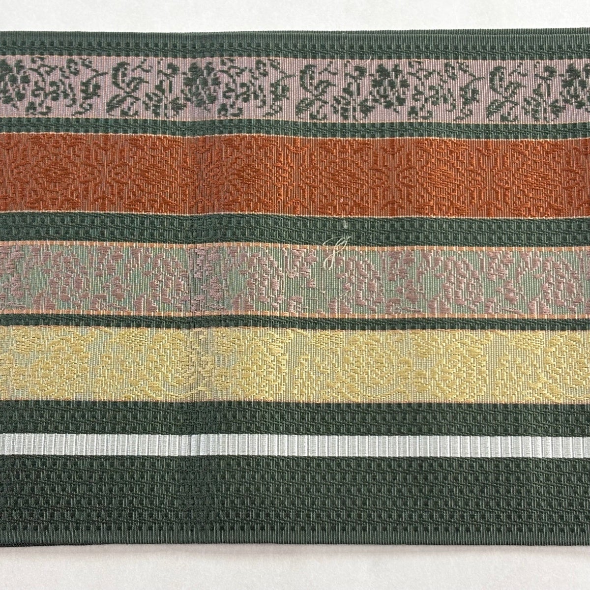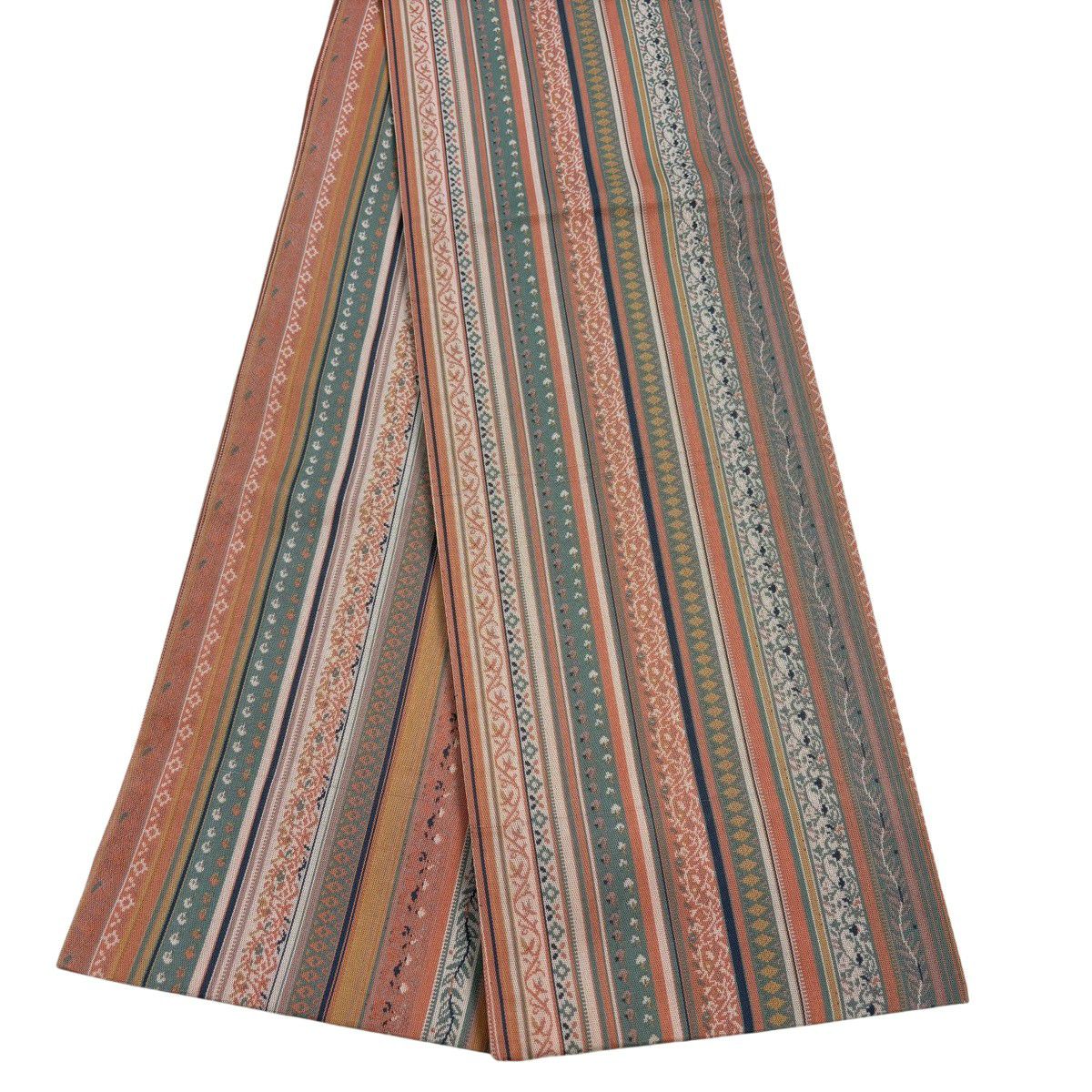 半幅帯 秀品 縞 幾何学模様 からし色 綿