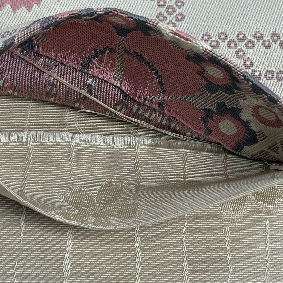 半幅帯 秀品 縞 草花 ピンクベージュ 正絹
