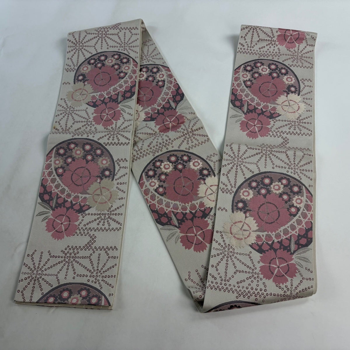 半幅帯 秀品 撫子 麻の葉 ベージュ 正絹