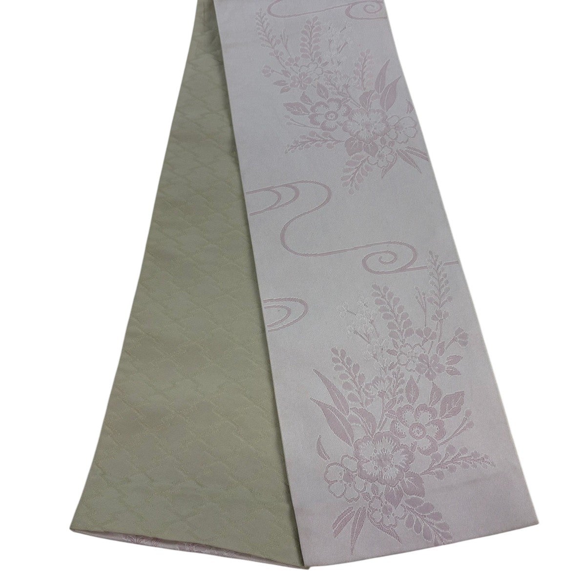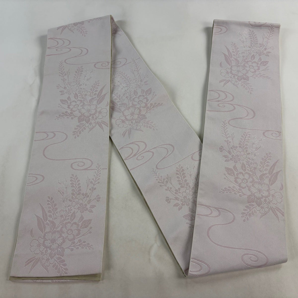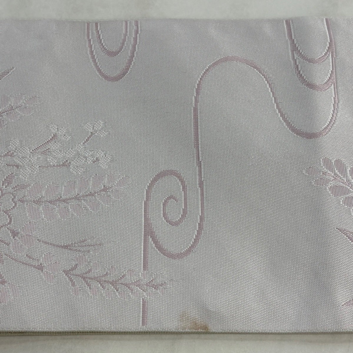 半幅帯 優品 草花 流水 薄ピンク 化繊