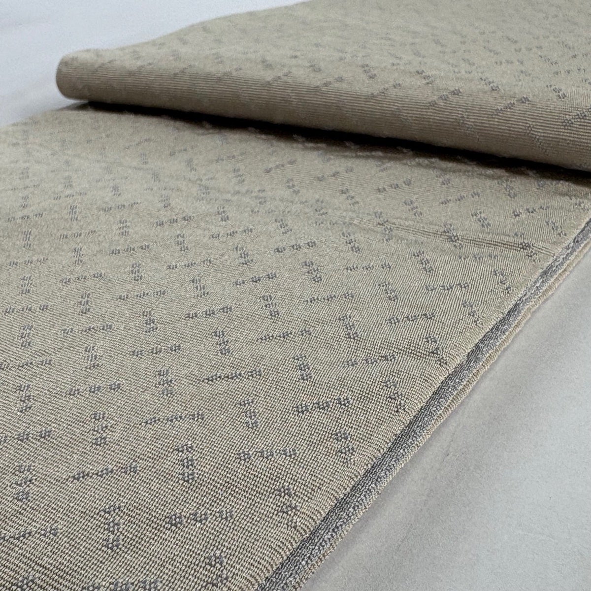 半幅帯 名品 縞 幾何学 ベージュ 正絹