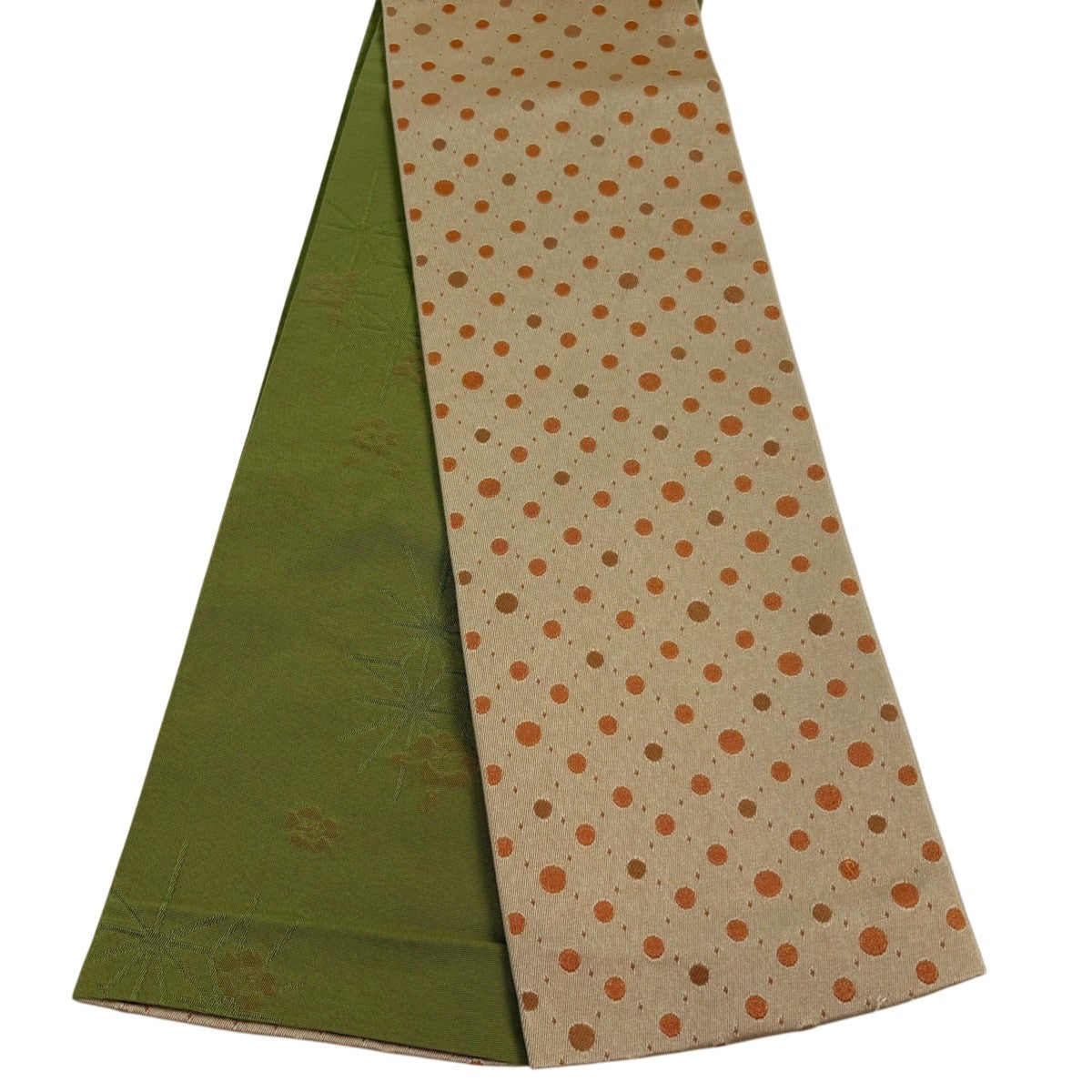半幅帯 優品 桜 花びら 抹茶色 化繊