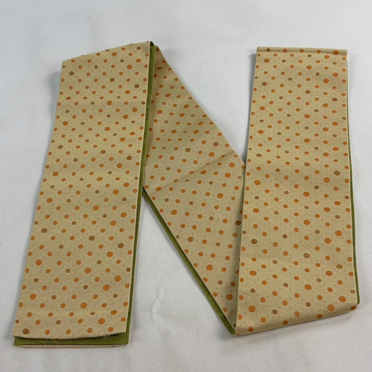半幅帯 優品 変わり市松 花びら 黄土色 化繊
