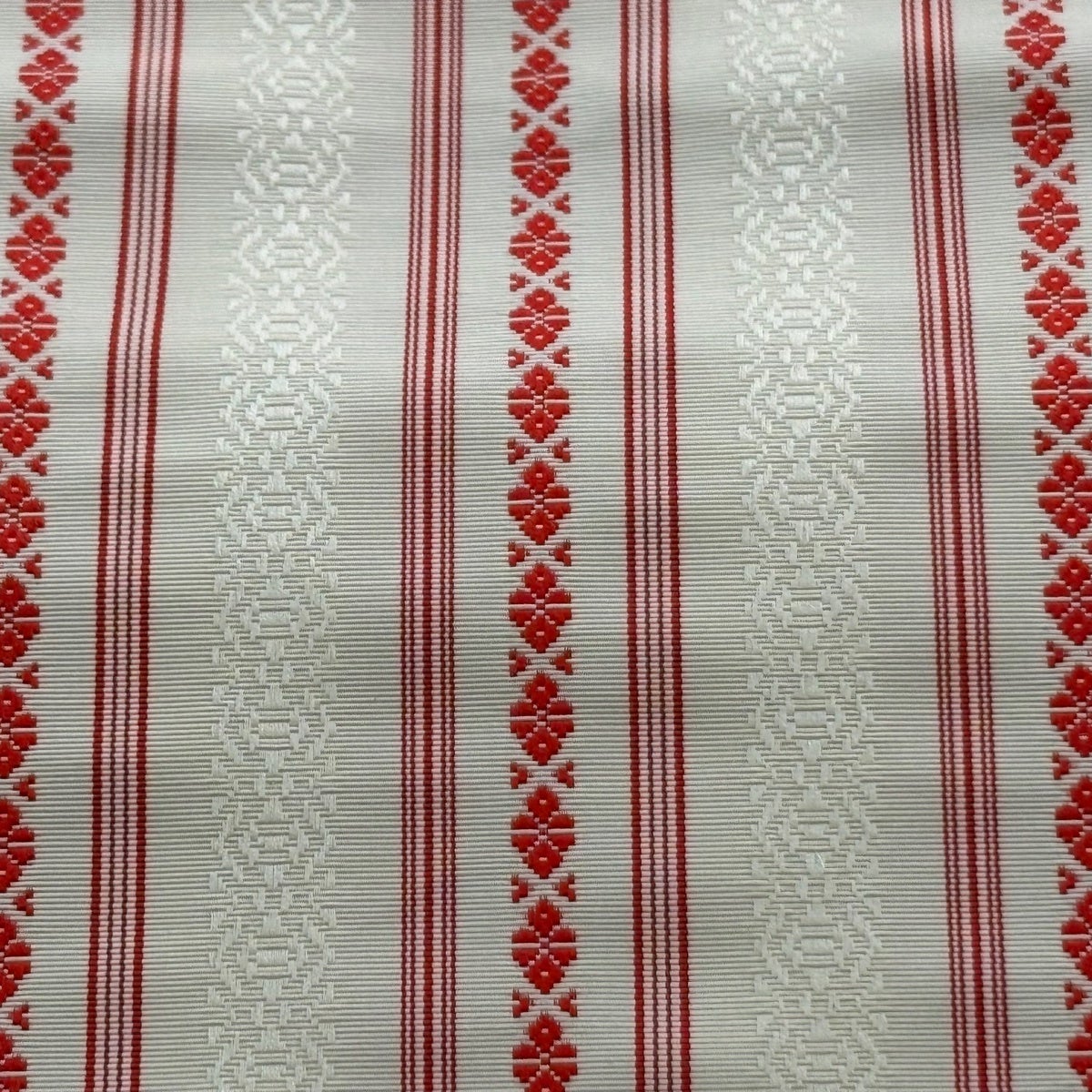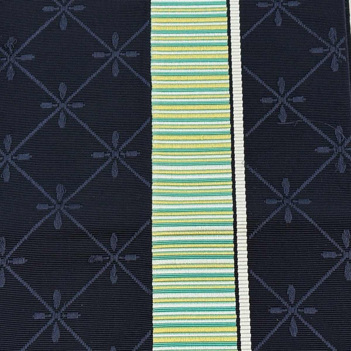 半幅帯 優品 段縞 幾何学模様 クリーム 化繊