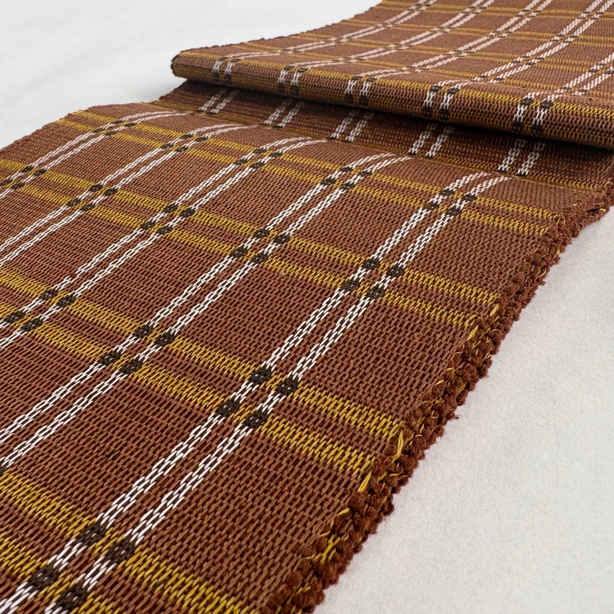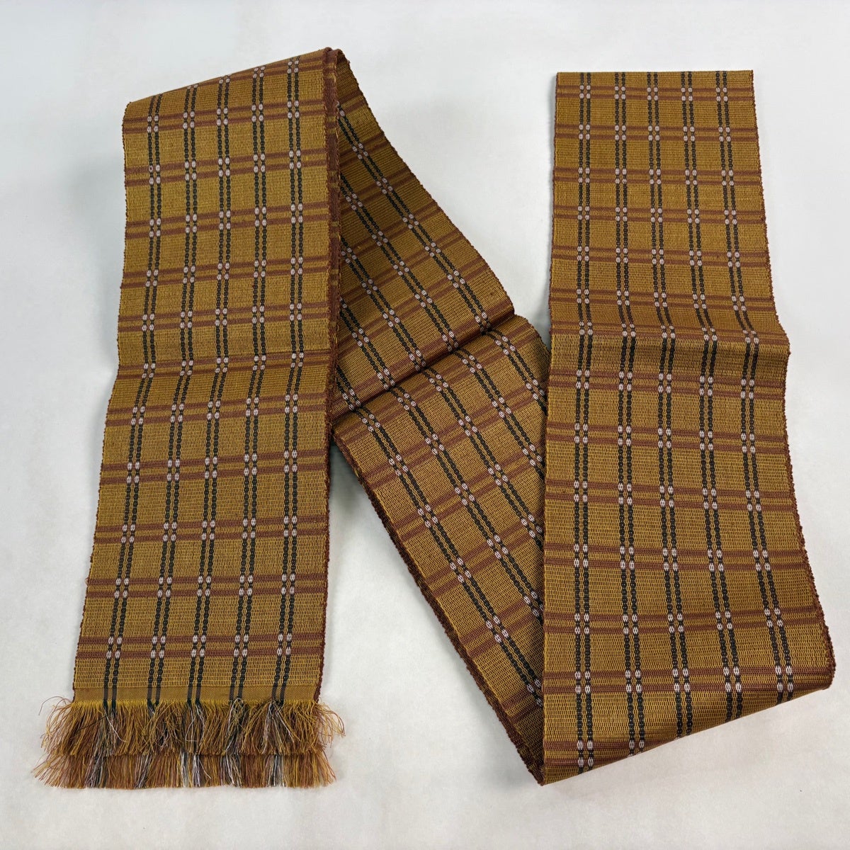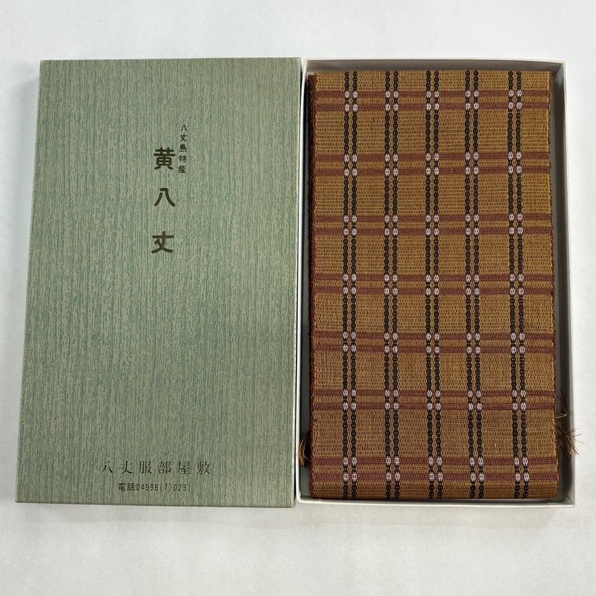 半幅帯 逸品 本場黄八丈 共箱付 格子 山吹茶色 正絹