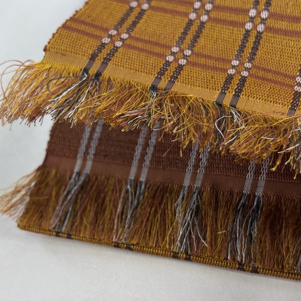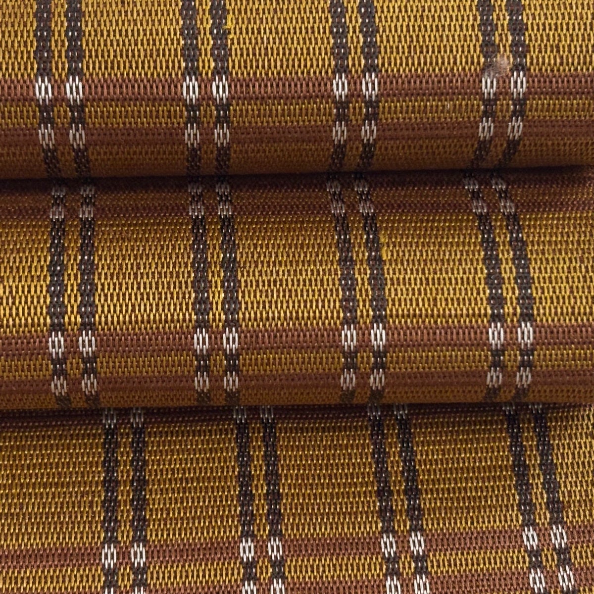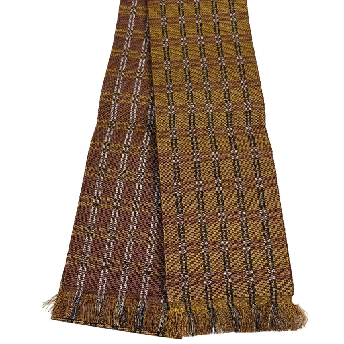半幅帯 逸品 本場黄八丈 共箱付 格子 山吹茶色 正絹