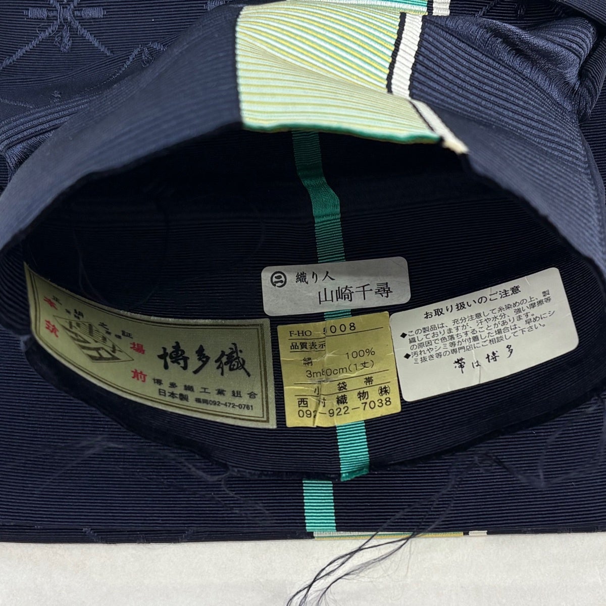 半幅帯 秀品 証紙あり 本場筑前博多織 縞 斜め格子 紺色 正絹