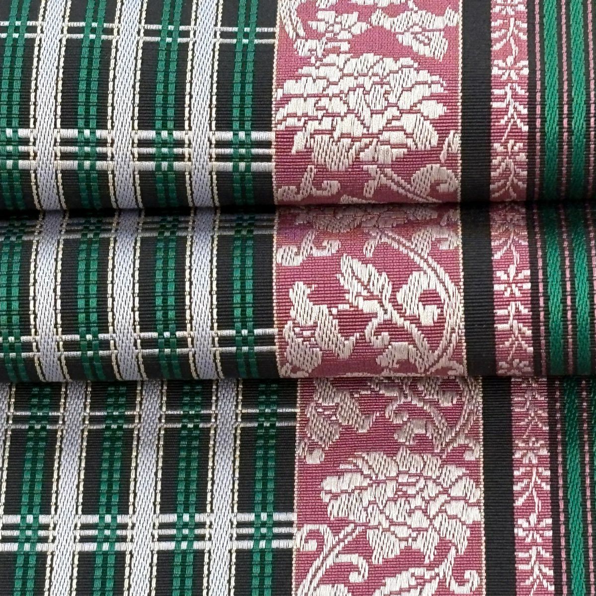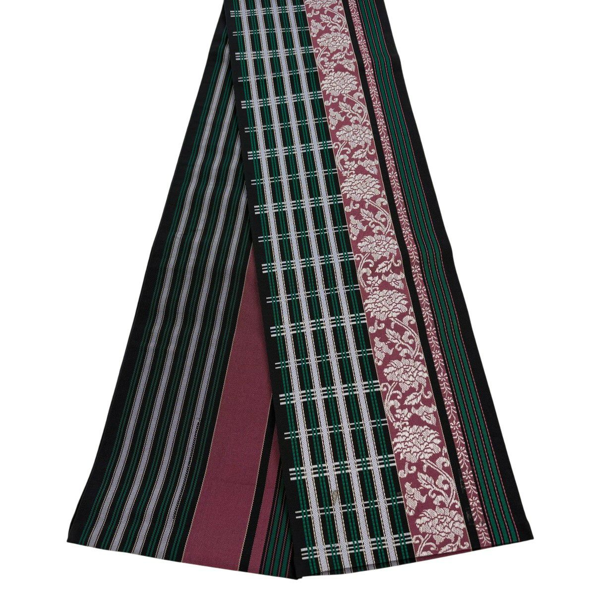 半幅帯 優品 麻の葉 市松模様 緑 化繊