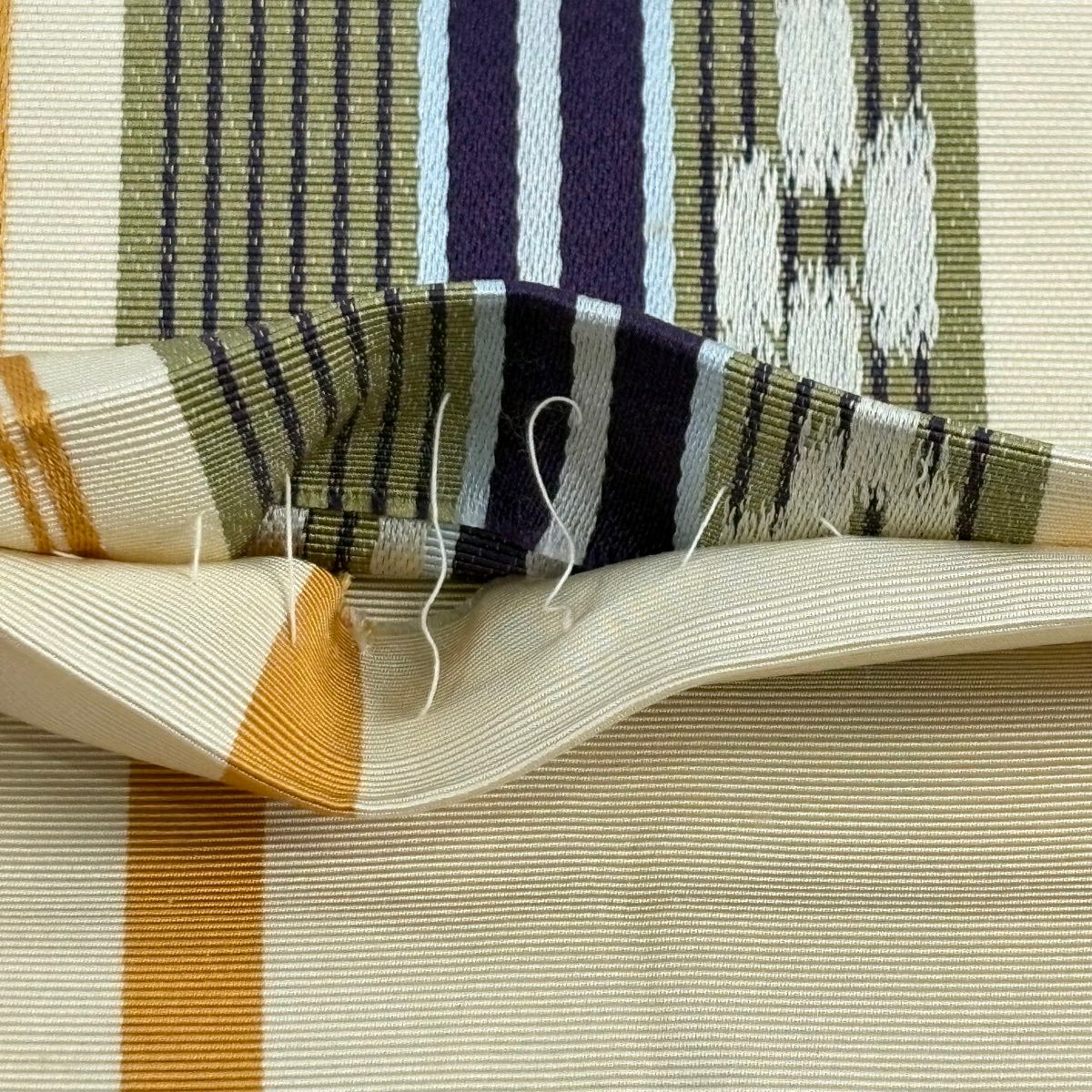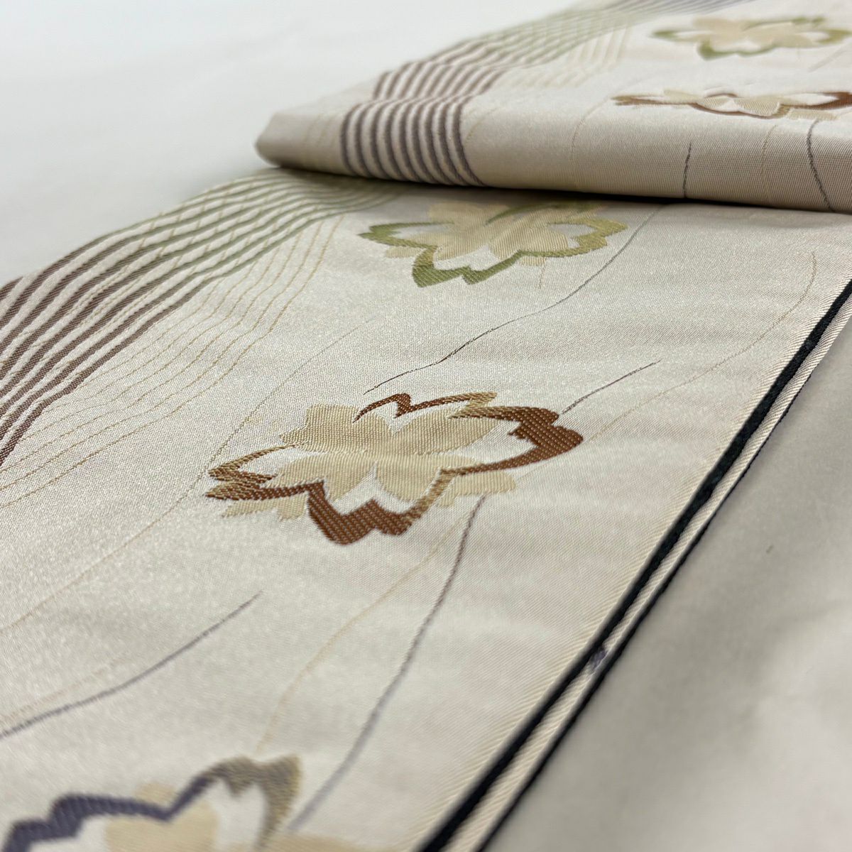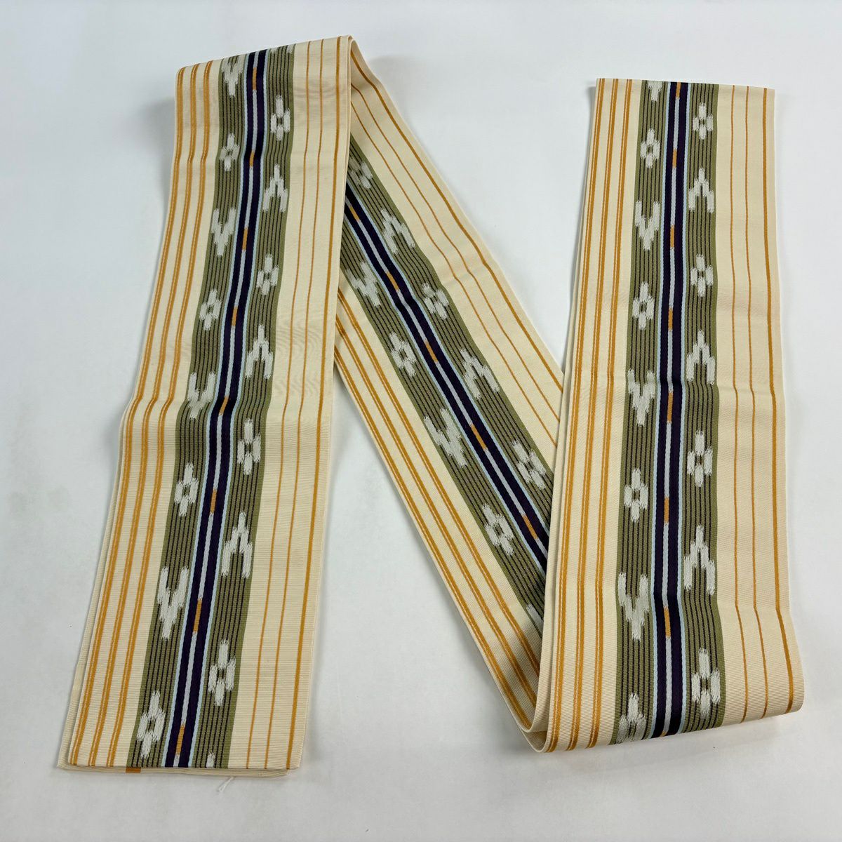 半幅帯 優品 縞 幾何学模様 クリーム 正絹