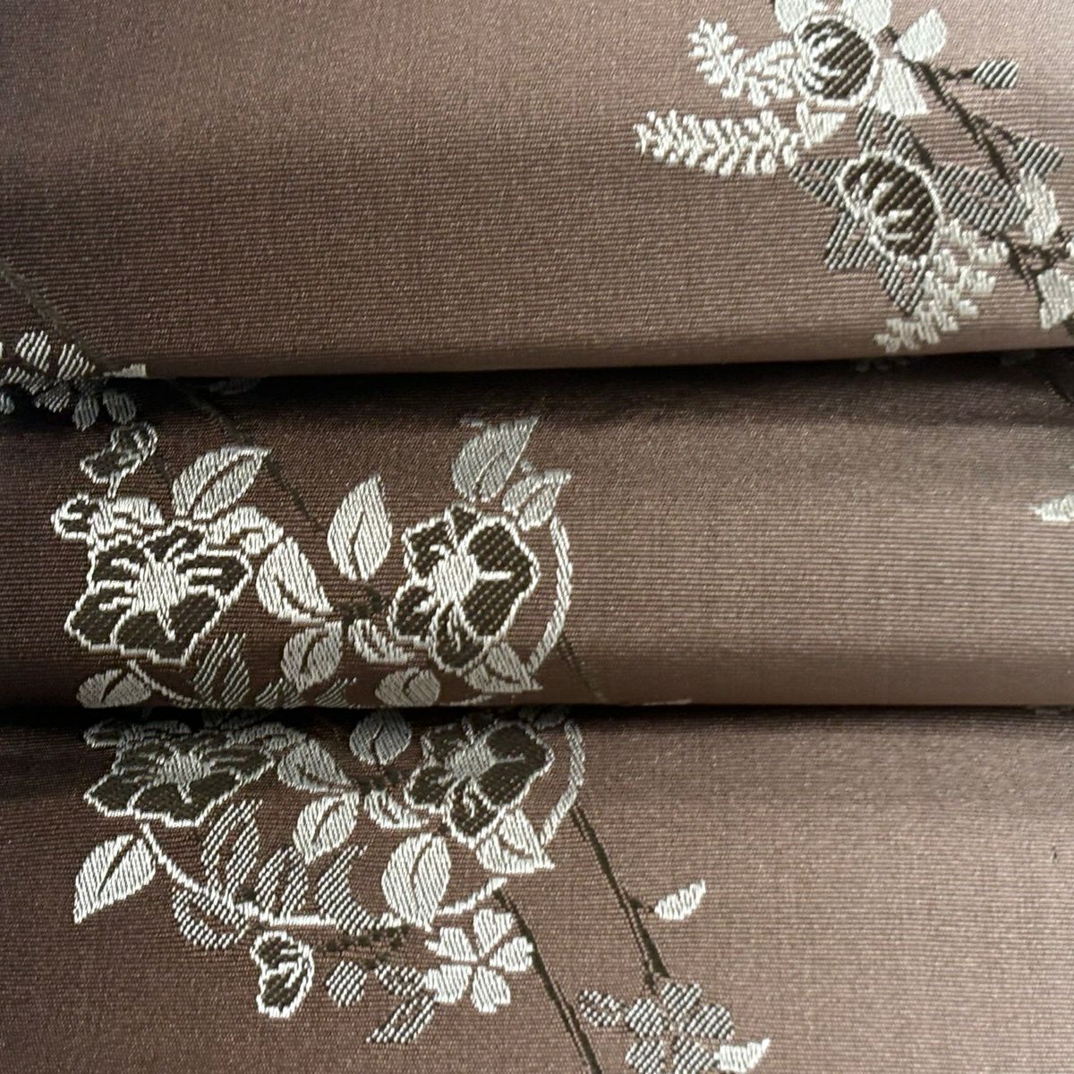 半幅帯 優品 花びら 紗綾型 薄茶色 化繊