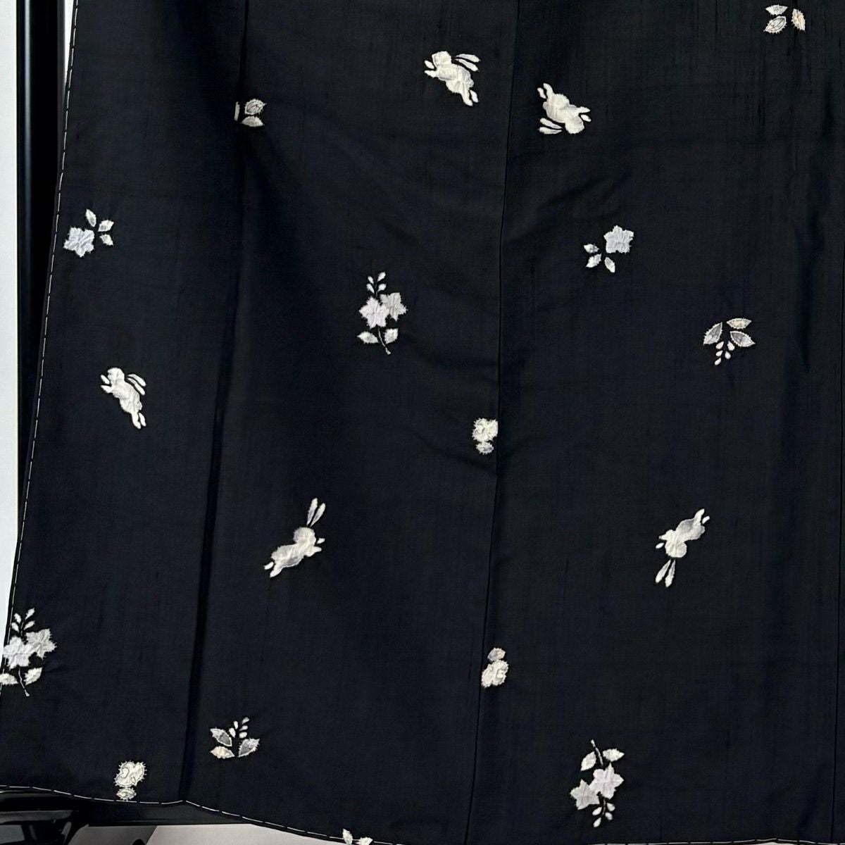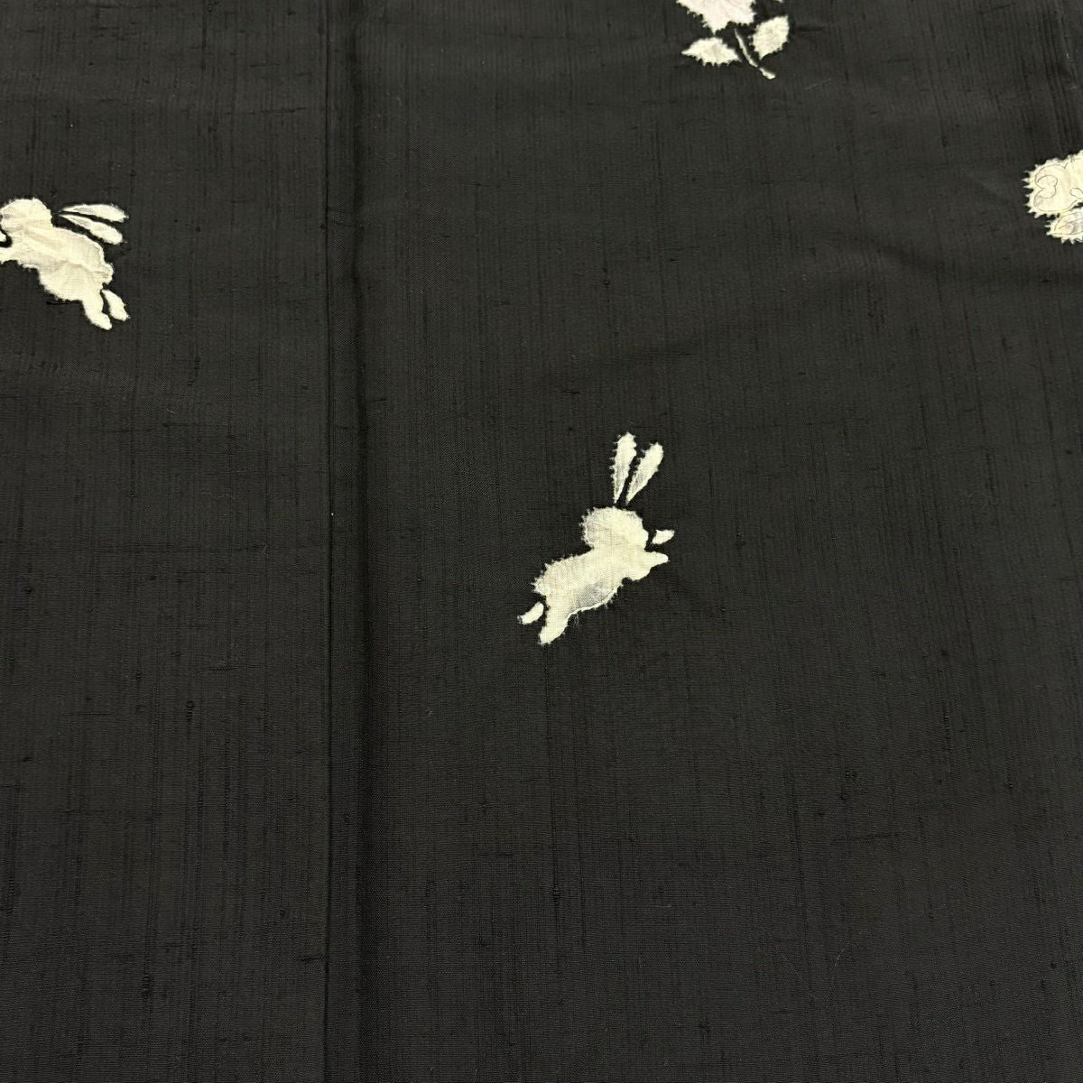 50%OFF 小紋 身丈161.5cm 裄丈63.5cm S 袷 紬地 うさぎ 草花 絞り 墨色 正絹 名品 K50