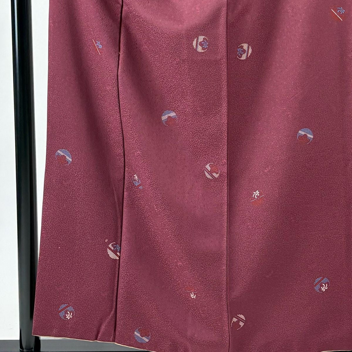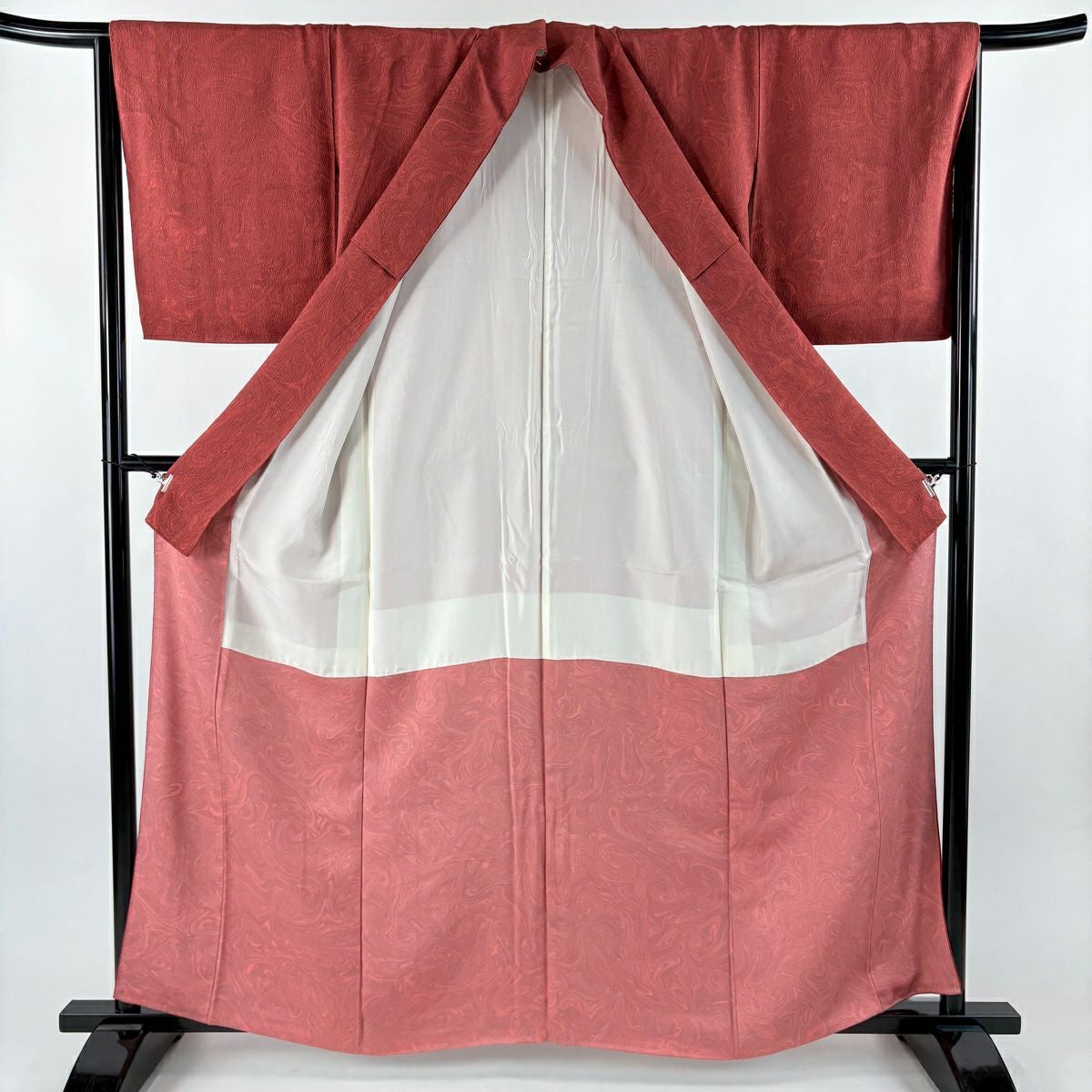50%OFF 小紋 身丈160.5cm 裄丈67cm M 袷 墨流し 茜色 正絹 名品 一つ紋 K50