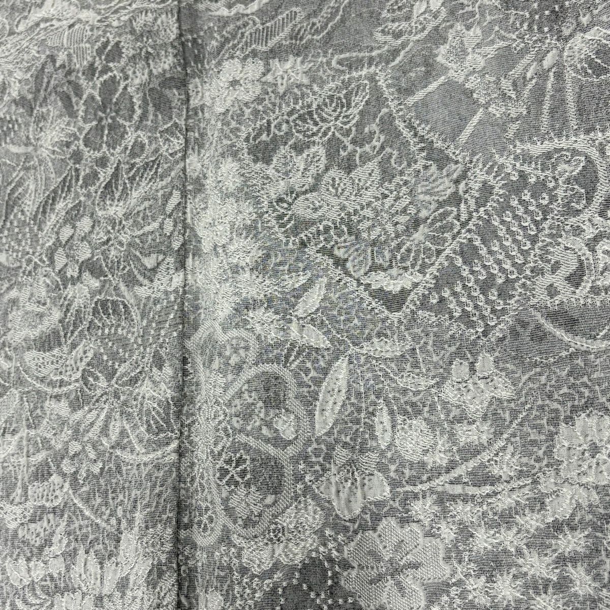 50%OFF 小紋 身丈156cm 裄丈63.5cm S 袷 草花 紋意匠 灰白 正絹 名品 K50