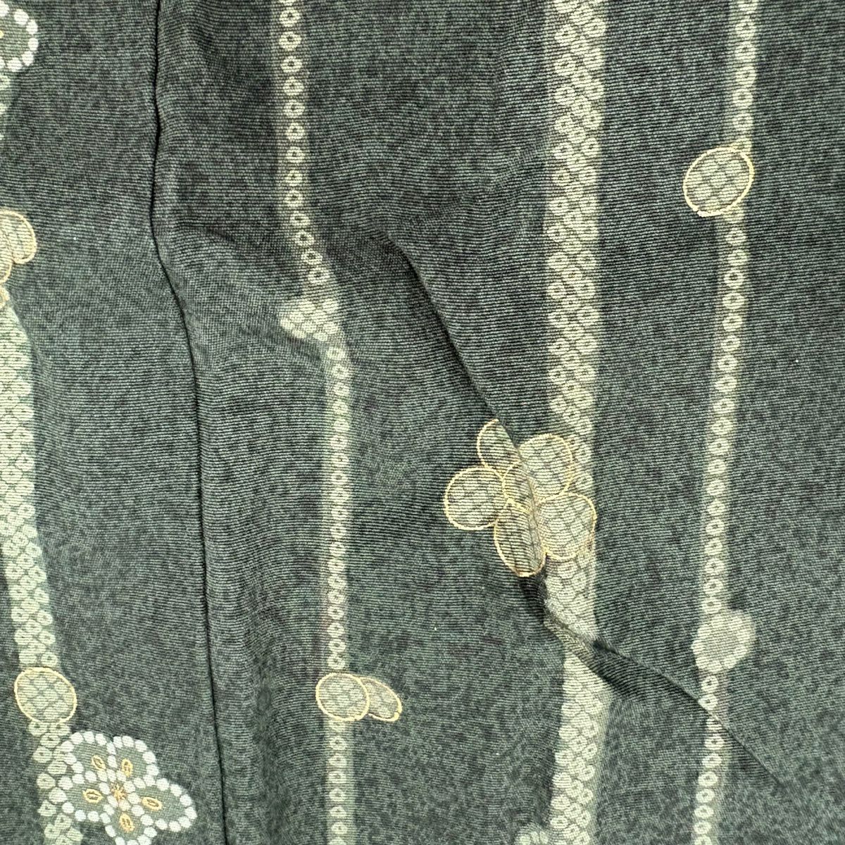 50%OFF 小紋 身丈152cm 裄丈62cm S 袷 紬地 花 灰緑 正絹 秀品 K50