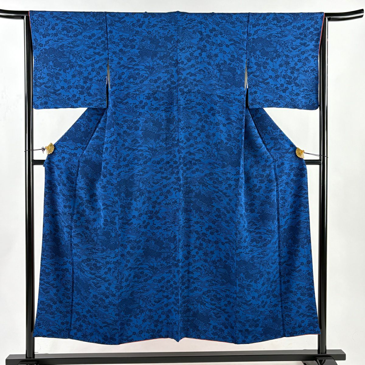 50%OFF 小紋 身丈150cm 裄丈65cm M 袷 松竹梅 流水 紺色 正絹 秀品 K50