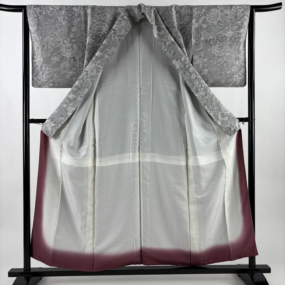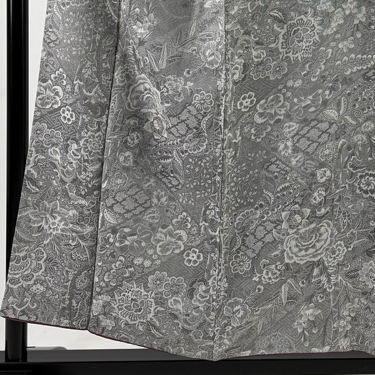 50%OFF 小紋 身丈156cm 裄丈63cm S 袷 草花 紋意匠 灰色 正絹 名品 K50