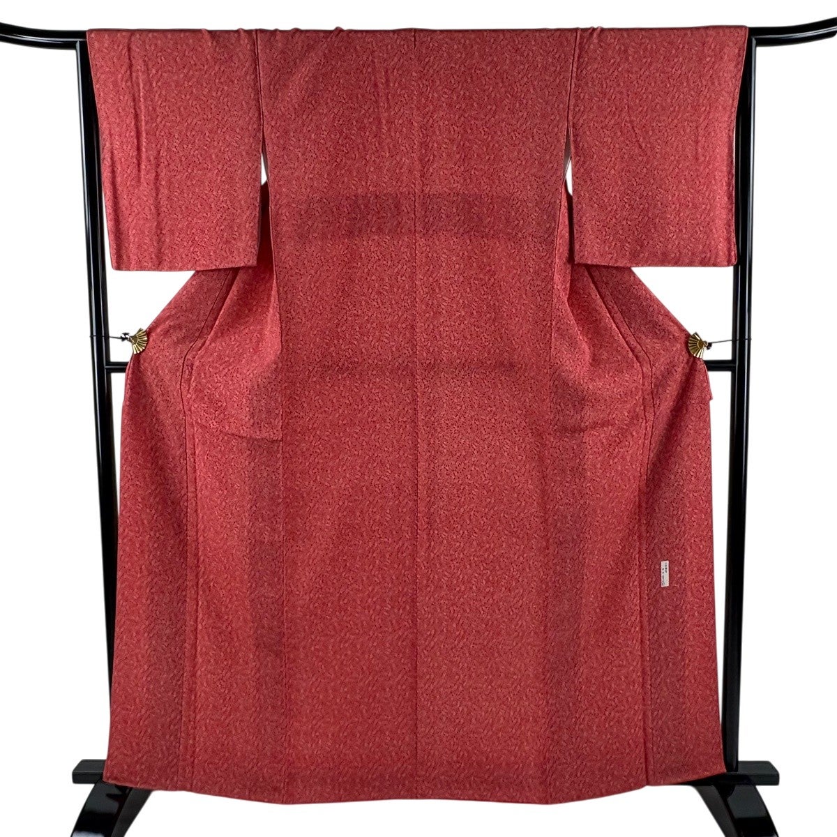 【美品】 江戸小紋 身丈161cm 裄丈63.5cm S 袷 鮫 地紋 サーモンピンク 正絹 優品 一つ紋