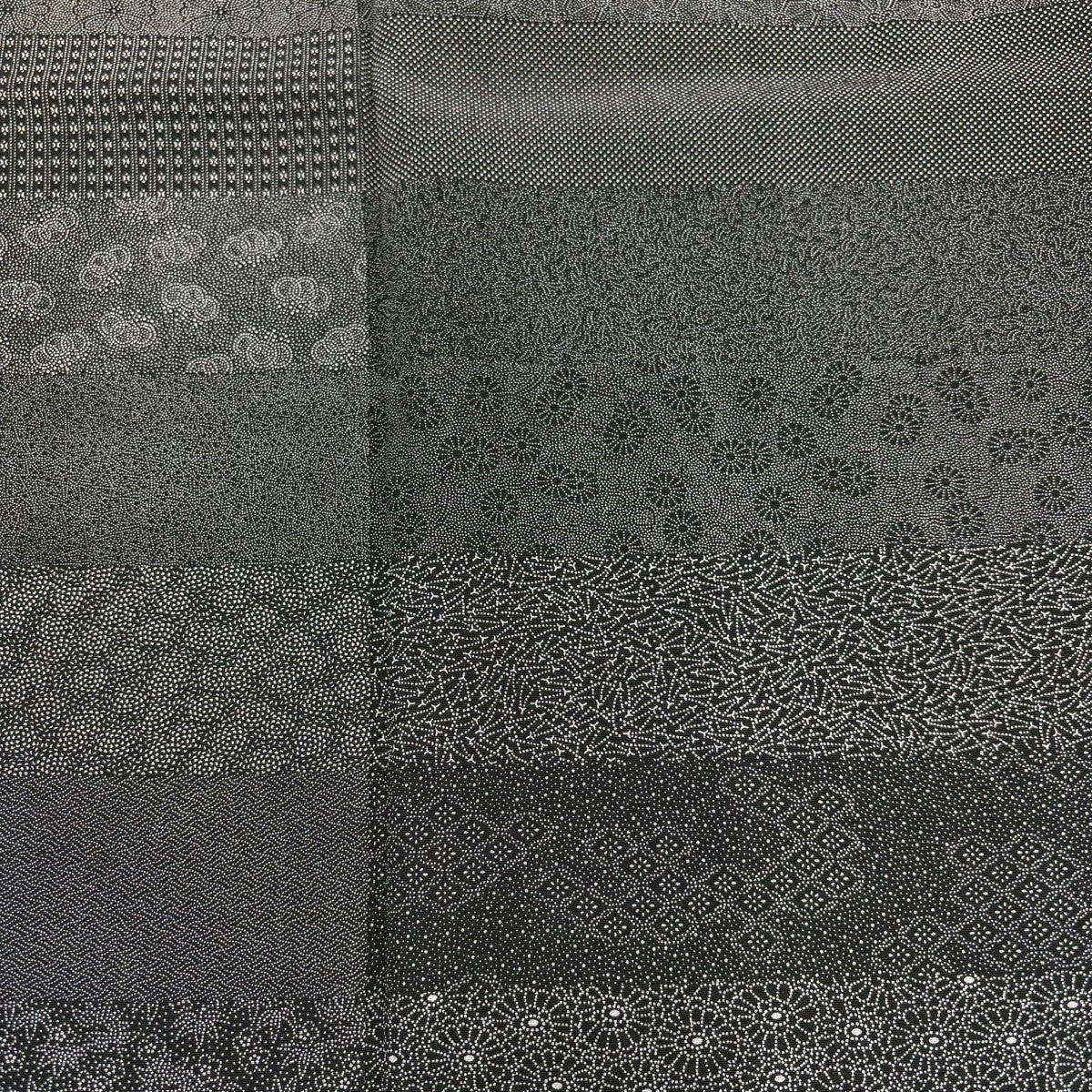 江戸小紋 身丈150cm 裄丈65cm M 袷 草木染 落款あり 鮫文 墨色 正絹 秀品 一つ紋