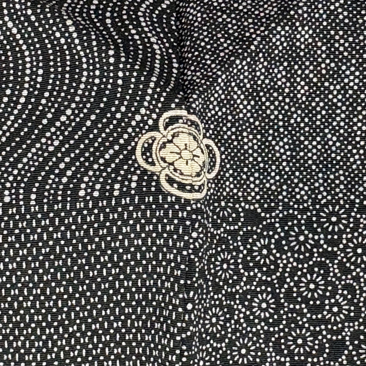江戸小紋 身丈156cm 裄丈63cm S 袷 関正三郎 落款あり 菊唐草 寄せ柄 黒 正絹 秀品 一つ紋