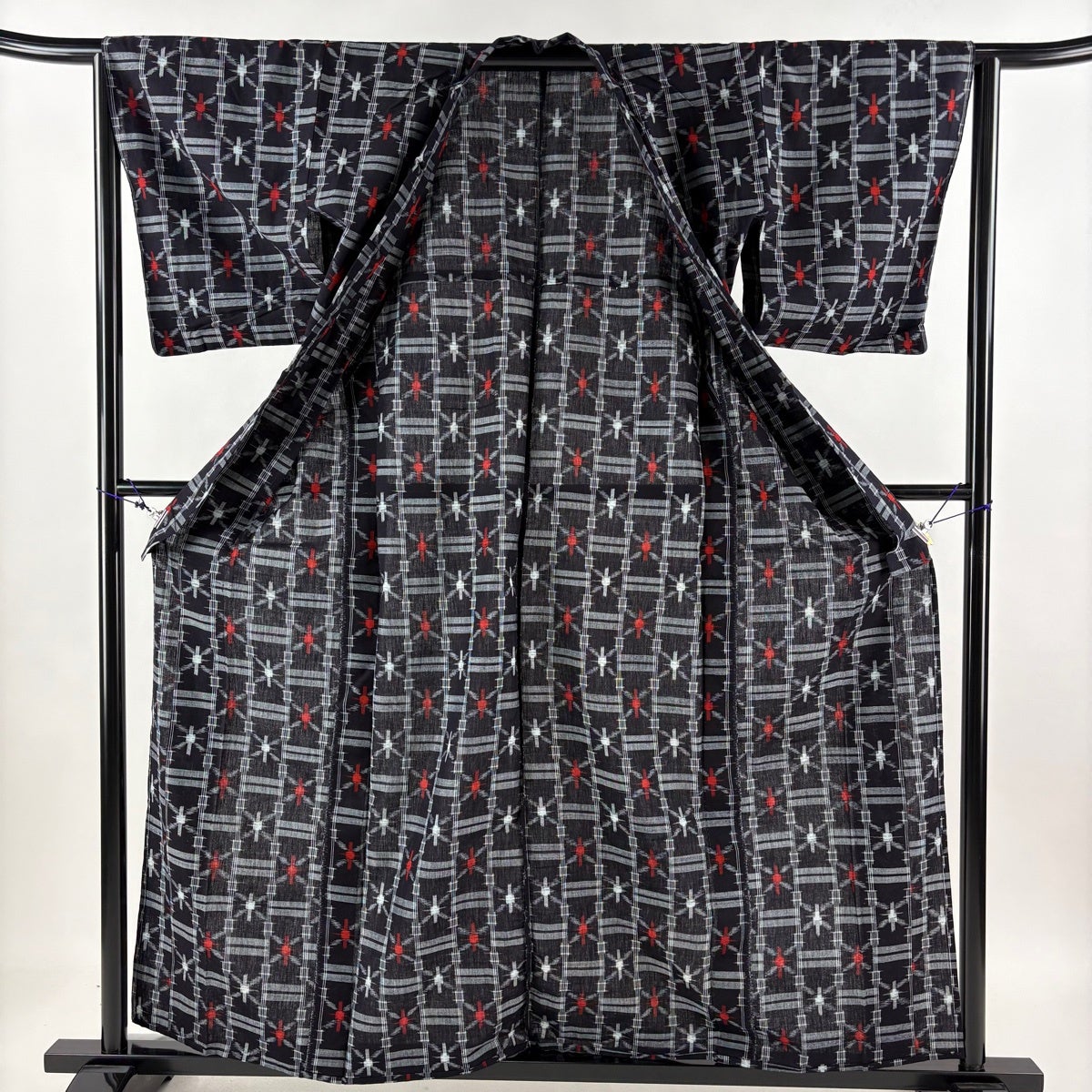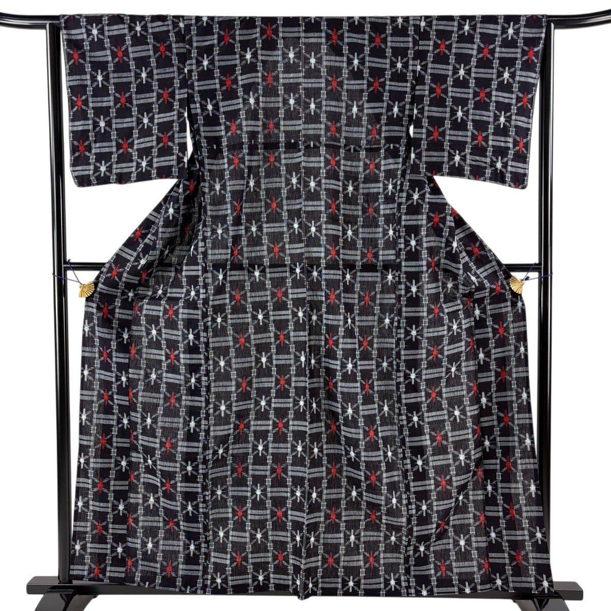 反物 逸品 久留米かすり 証紙 幾何学 十字絣 墨色 綿