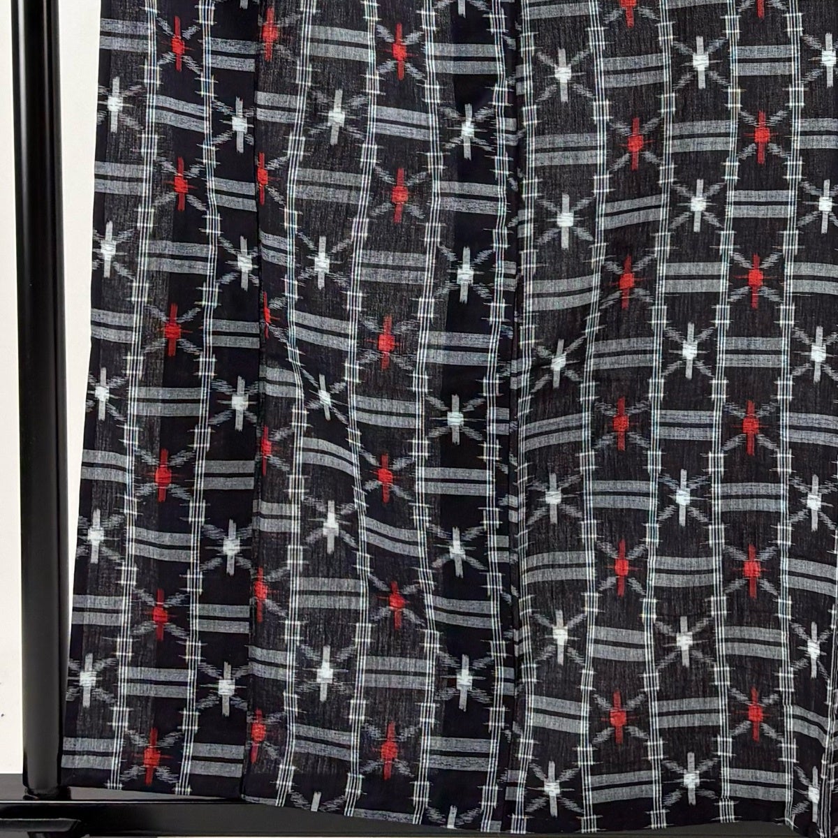 反物 逸品 紬 久留米絣 久留米かすり 証紙 縞 幾何学模様 黒 綿