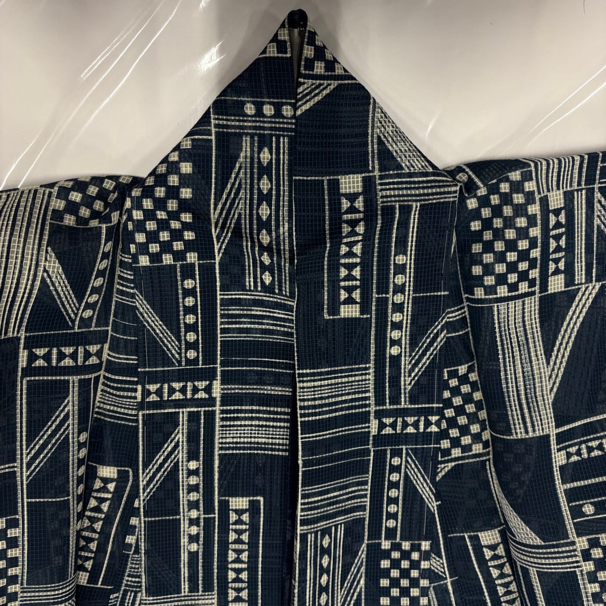 反物 優品 男着物 浴衣 幾何学 紺色 綿