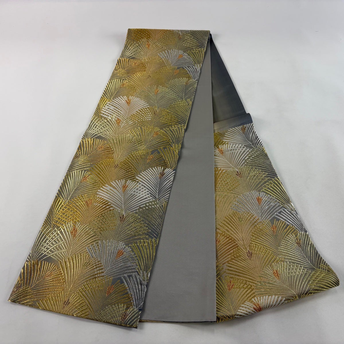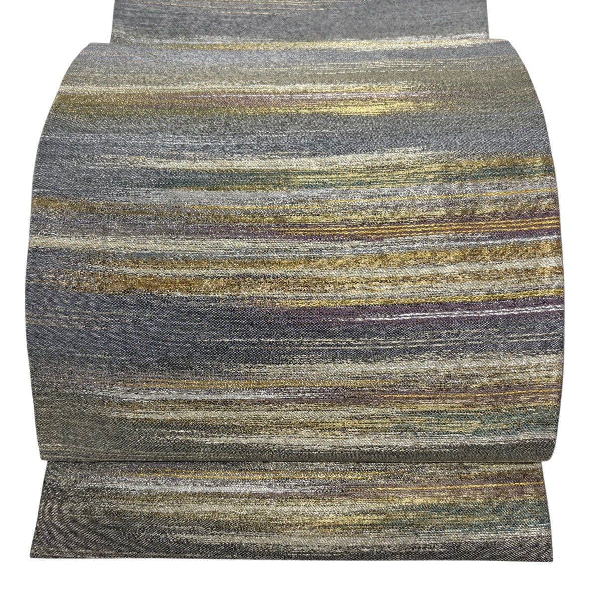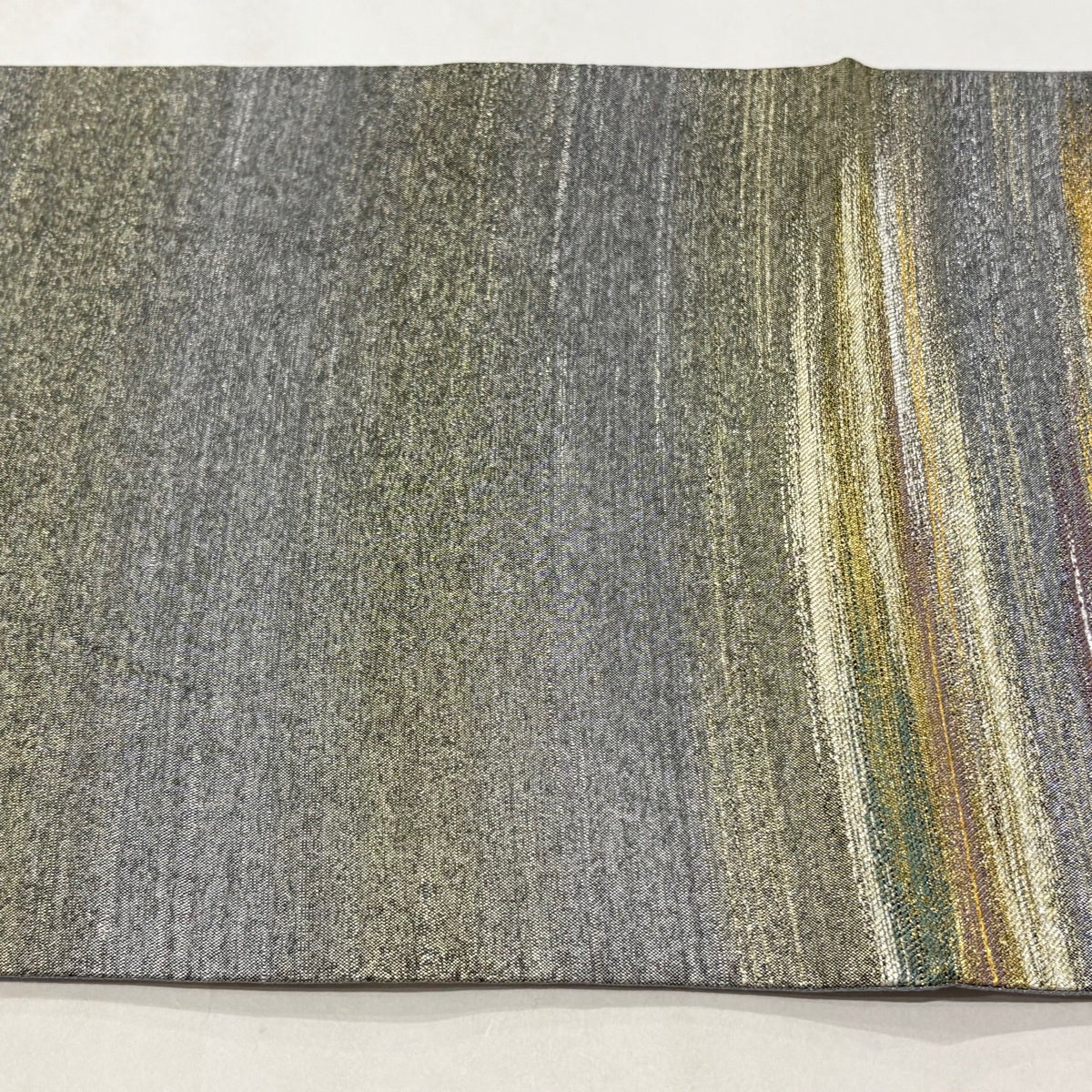 【美品】 袋帯 秀品 霞 金銀糸 箔 灰色 六通 正絹