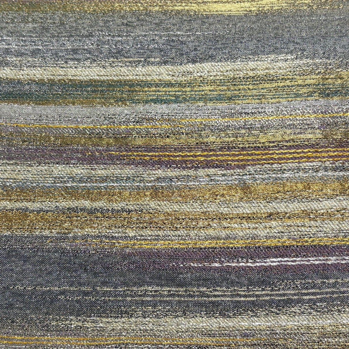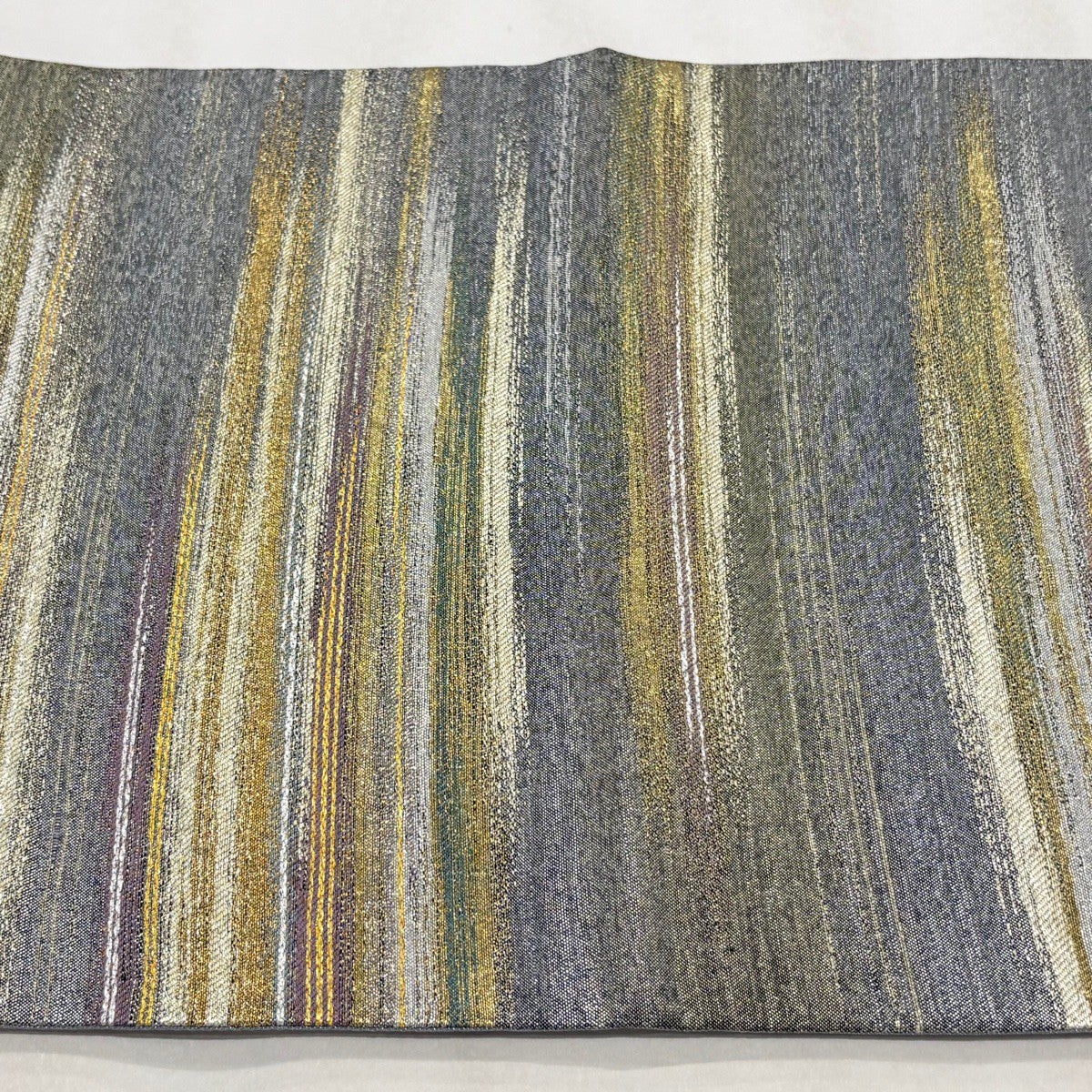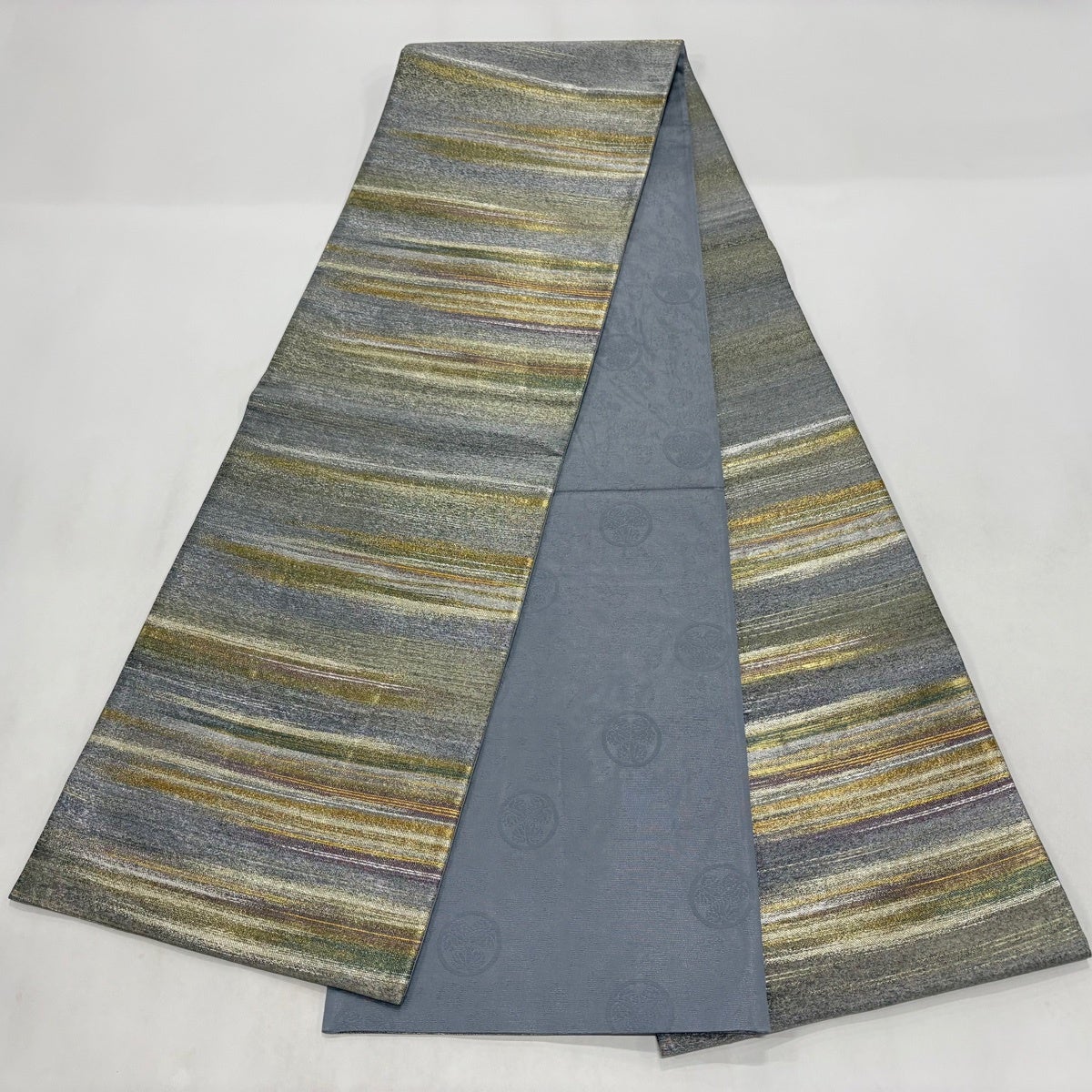 【美品】 袋帯 秀品 霞 縞 銀糸 青灰色 全通 正絹