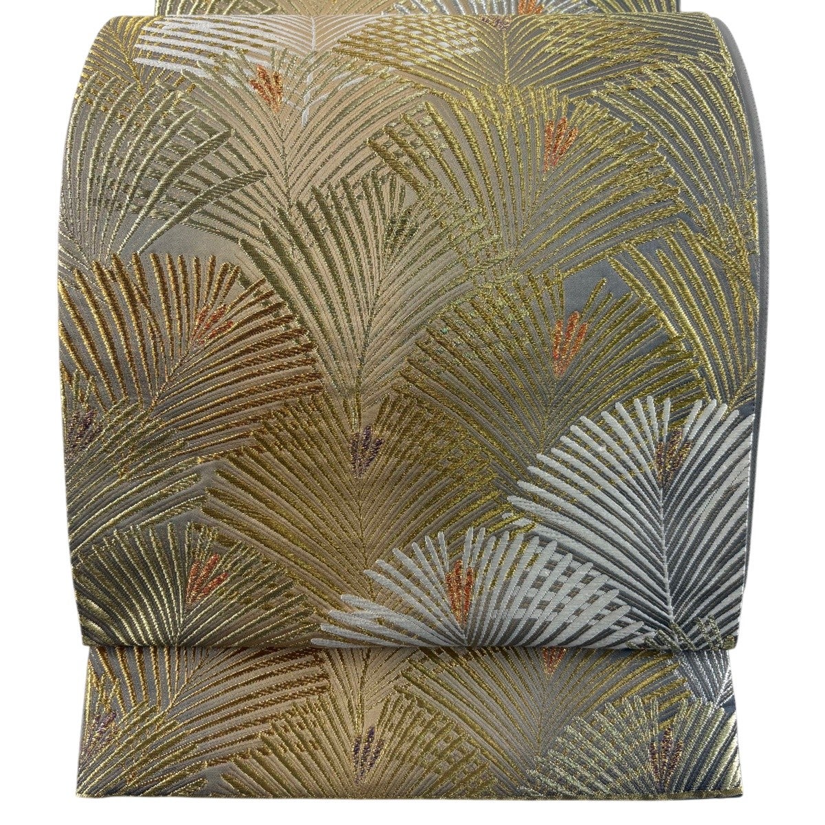 【美品】 袋帯 秀品 若松 箔 金銀糸 金色 六通 正絹