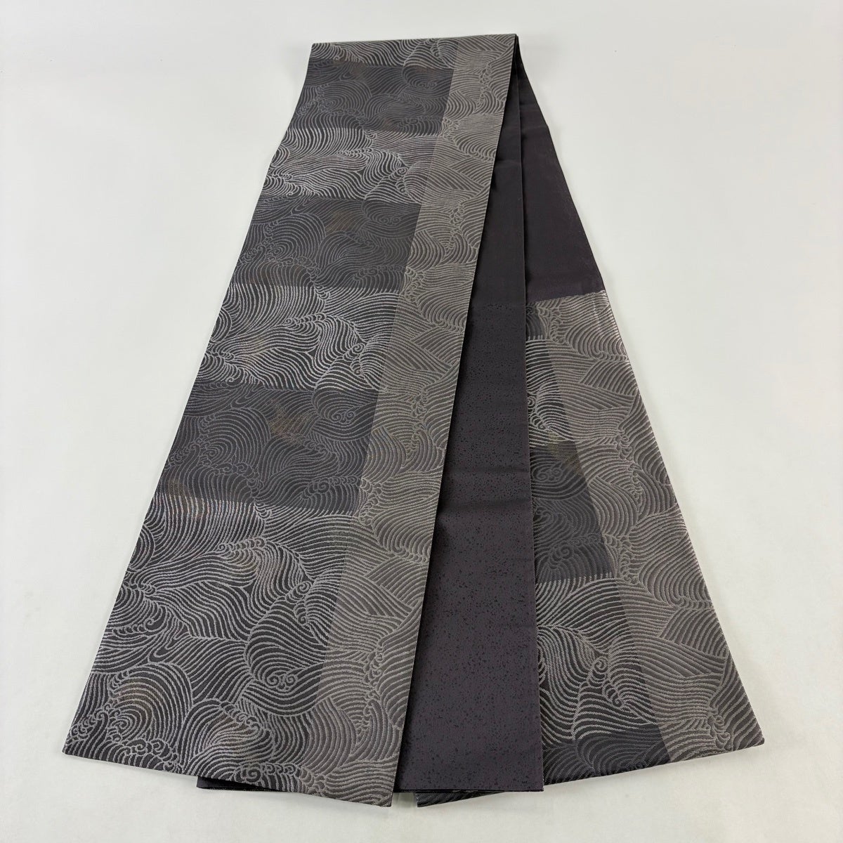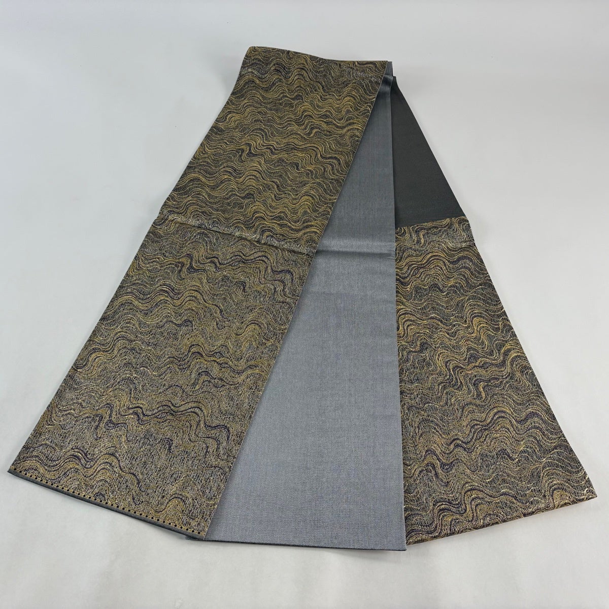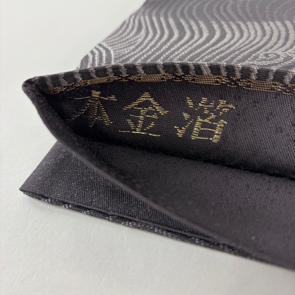 【美品】 袋帯 秀品 波 波頭 本金箔 灰紫 六通 正絹