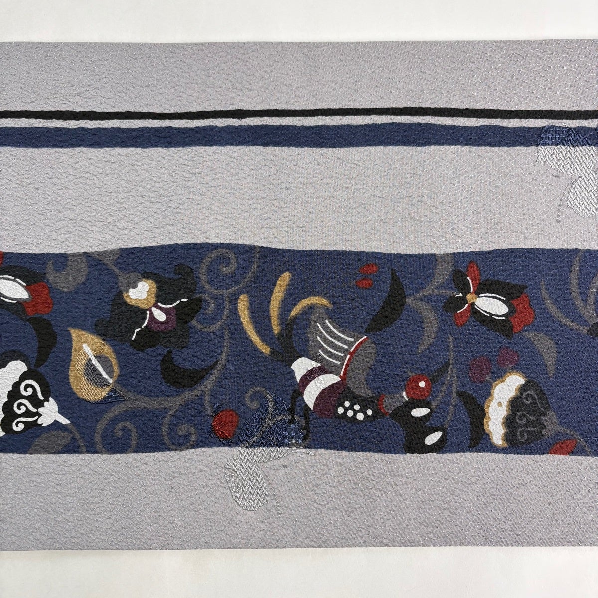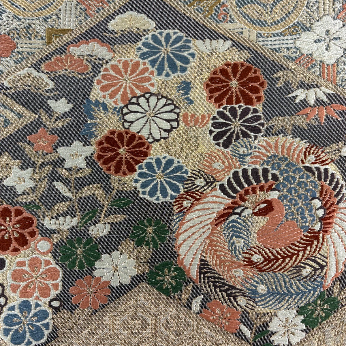 【美品】 袋帯 名品 草花 金銀糸 青灰色 六通 正絹