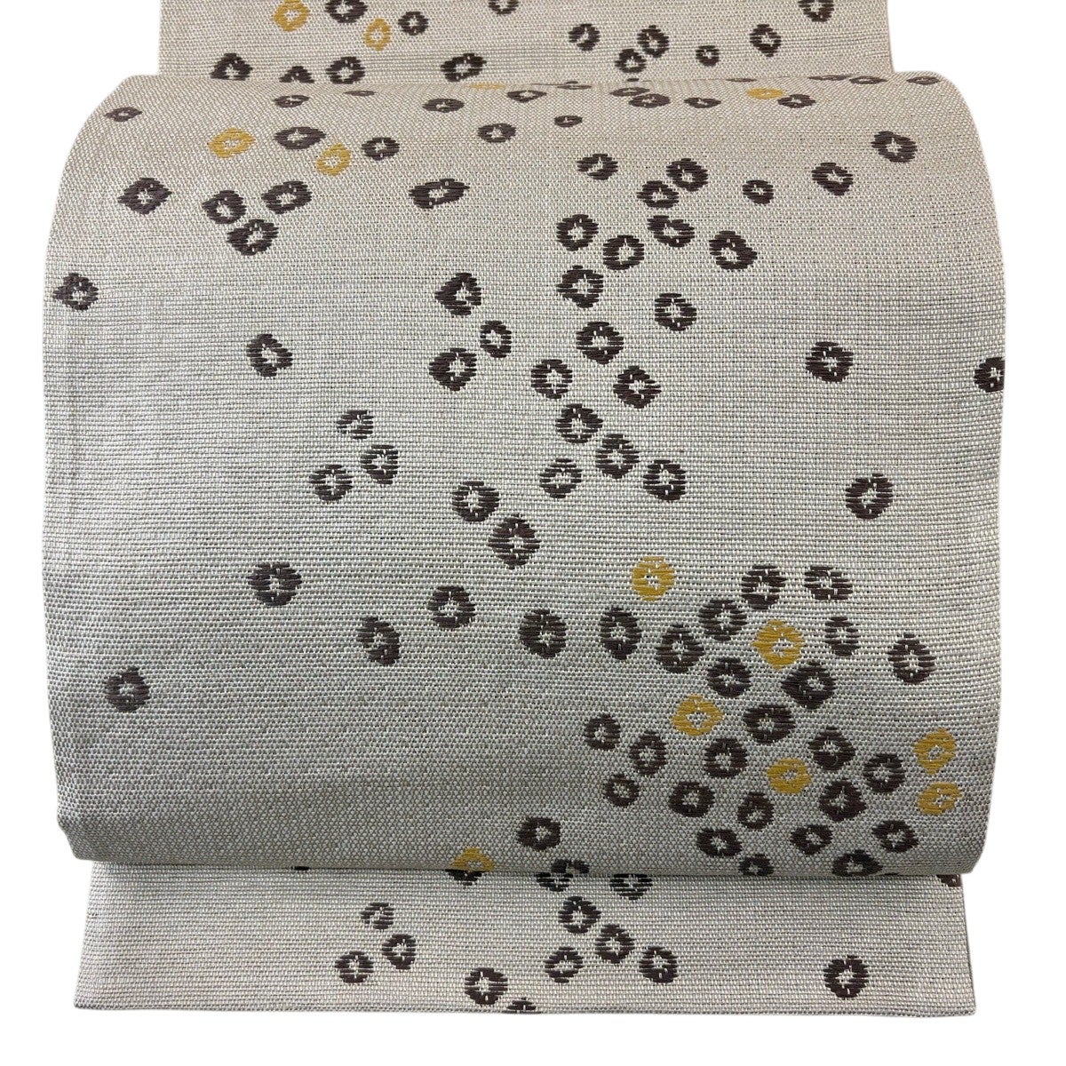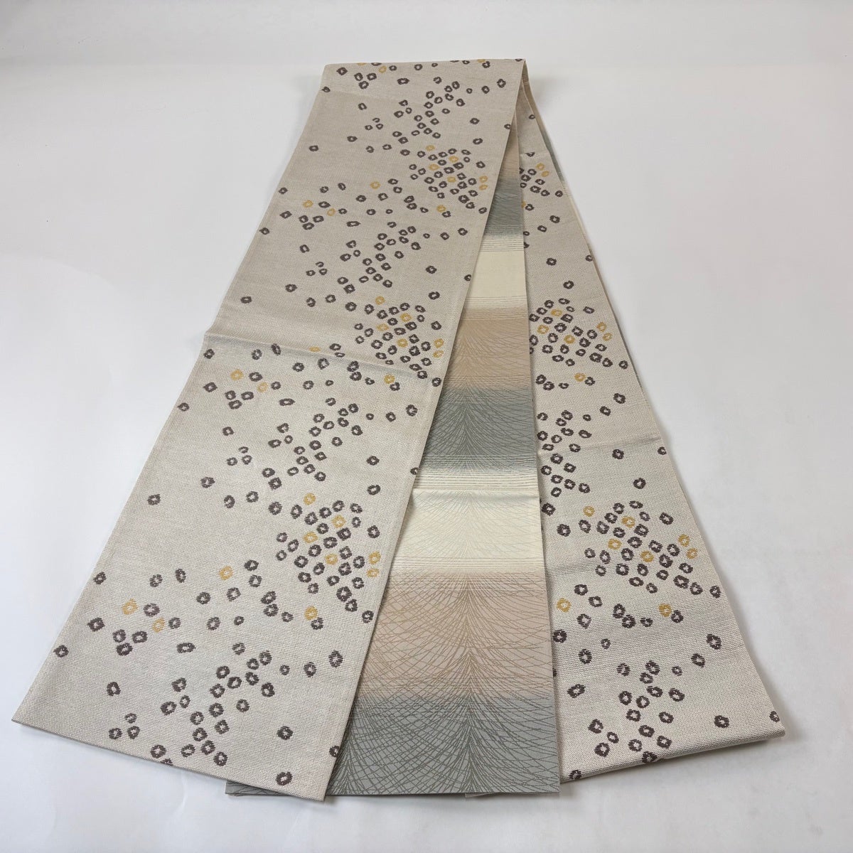 【美品】 袋帯 秀品 幾何学模様 箔 灰白 六通 正絹