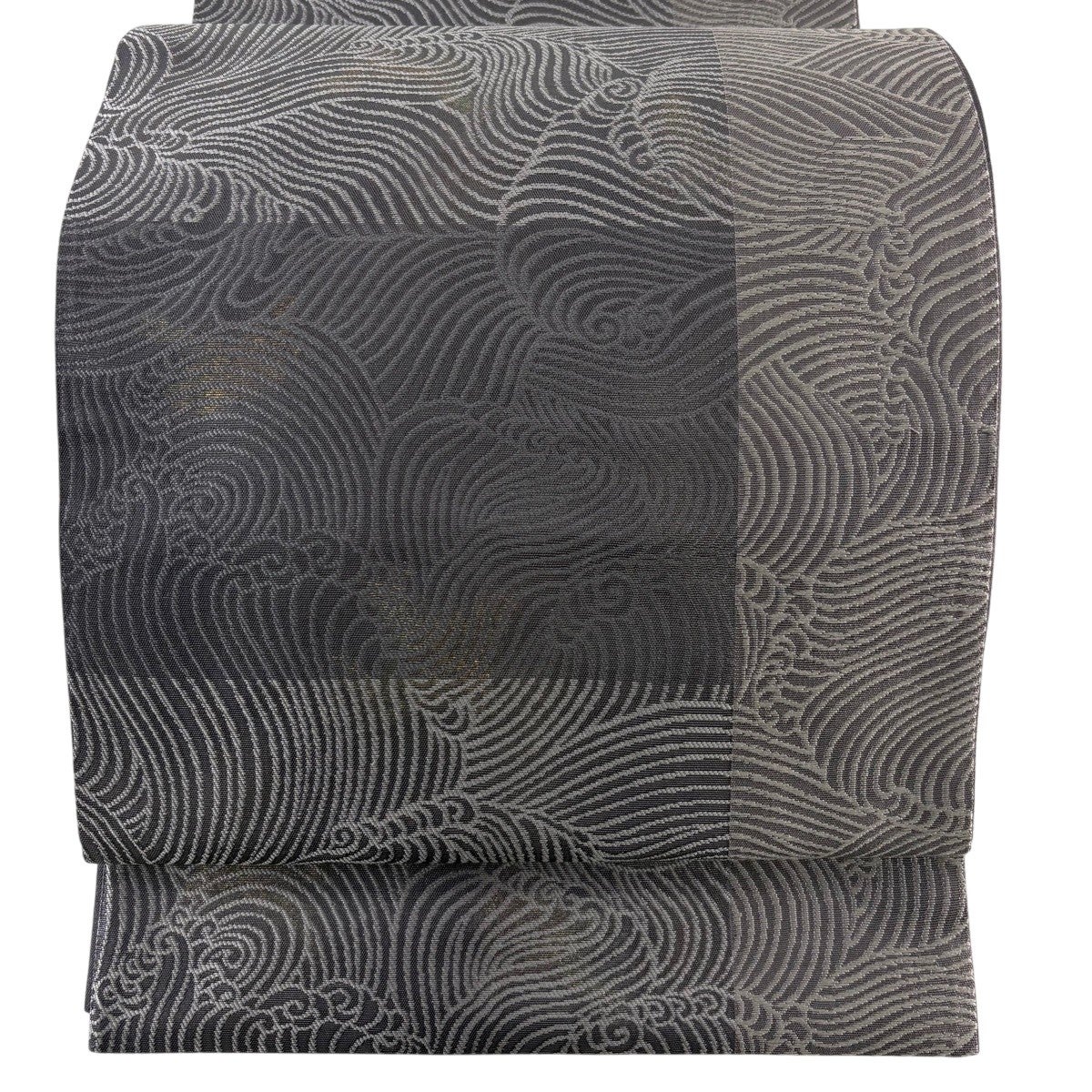 【美品】 袋帯 秀品 流水 銀糸 箔 灰色 六通 正絹