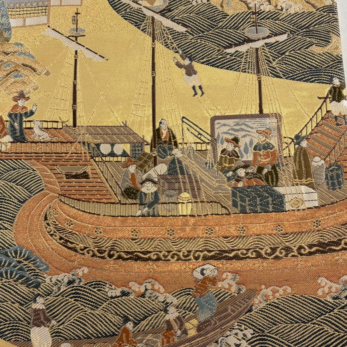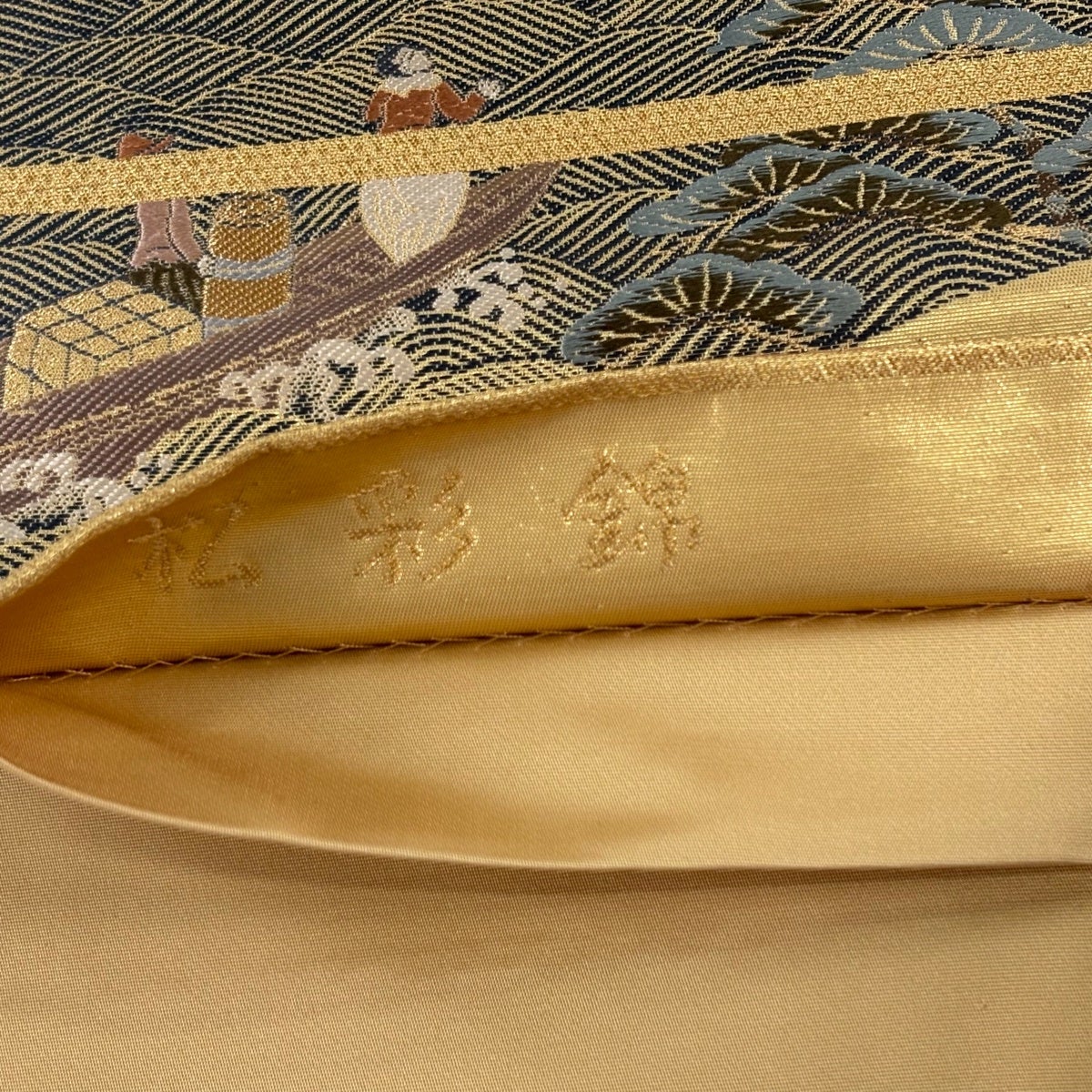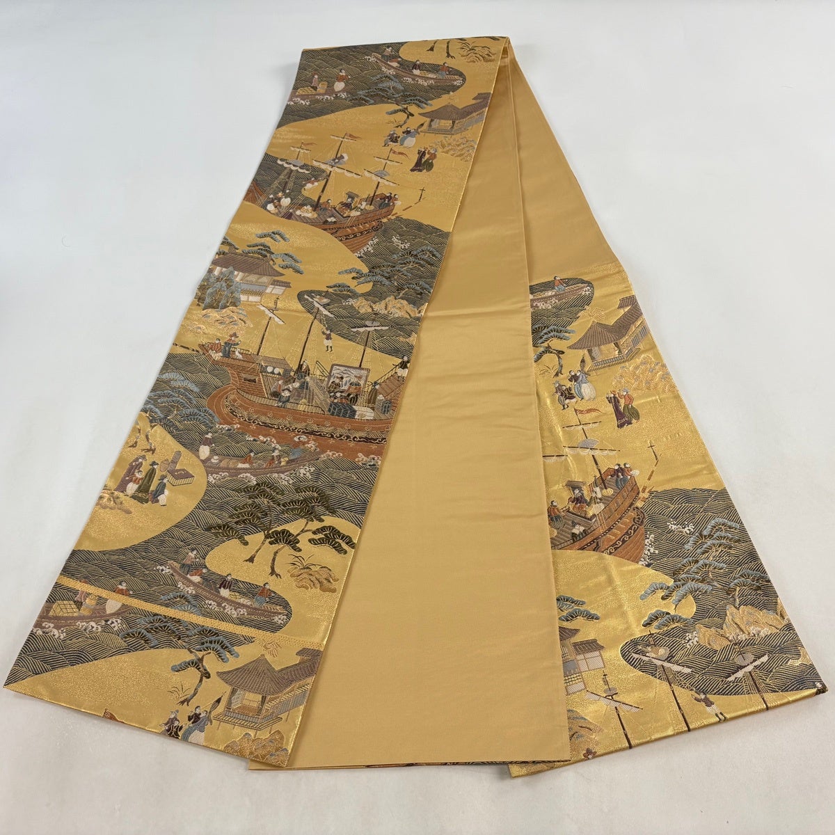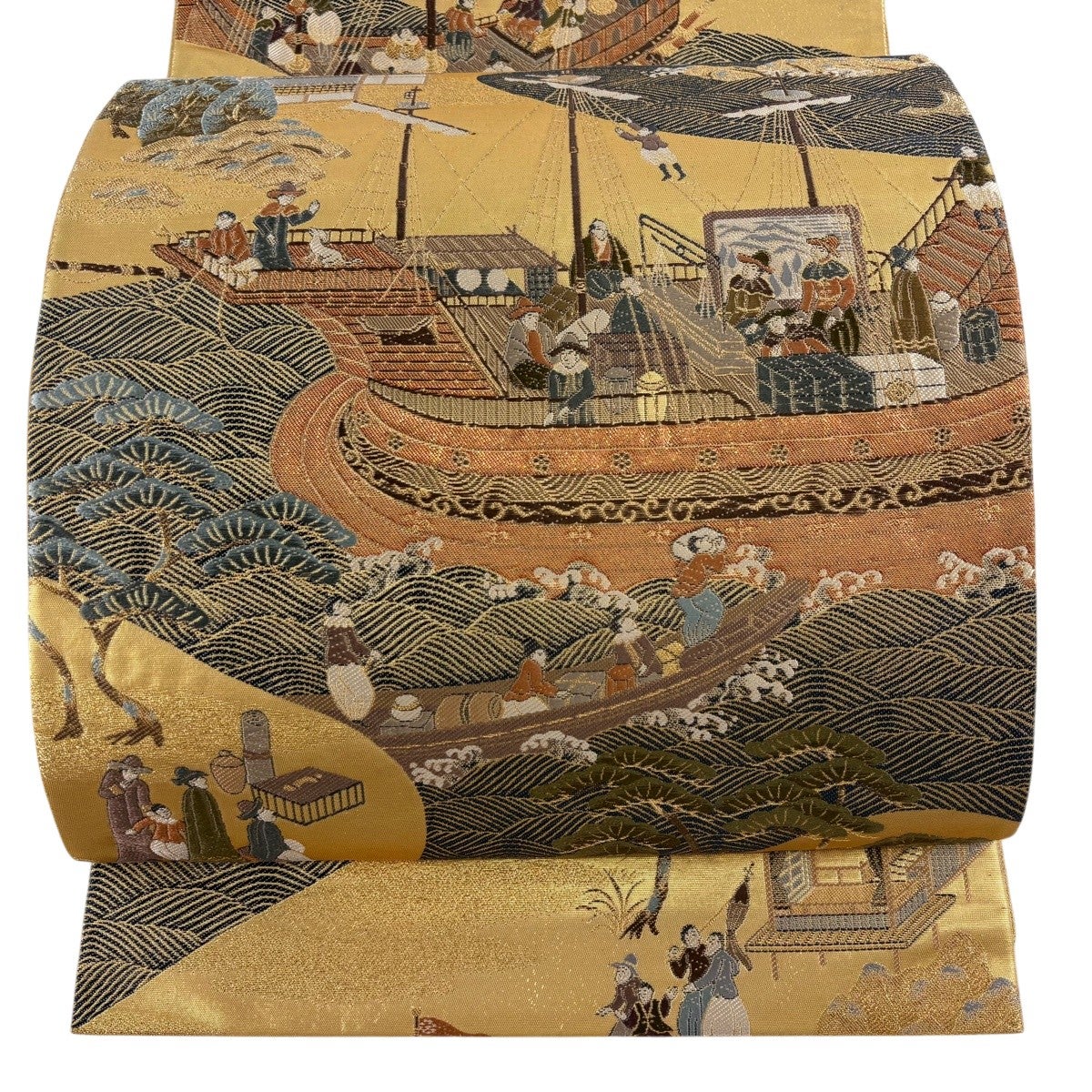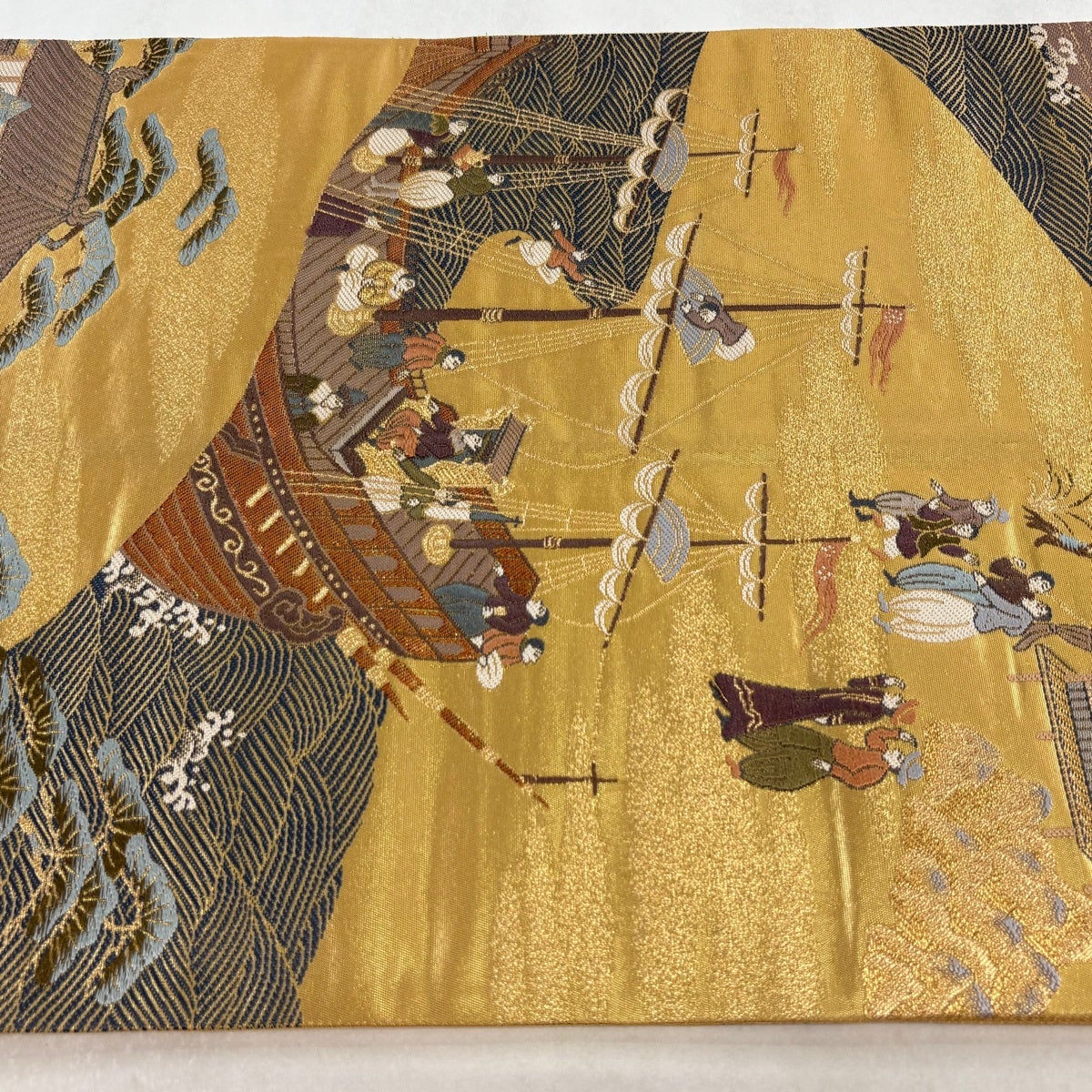 【美品】 袋帯 秀品 船 松 金糸 箔 金色 六通 正絹