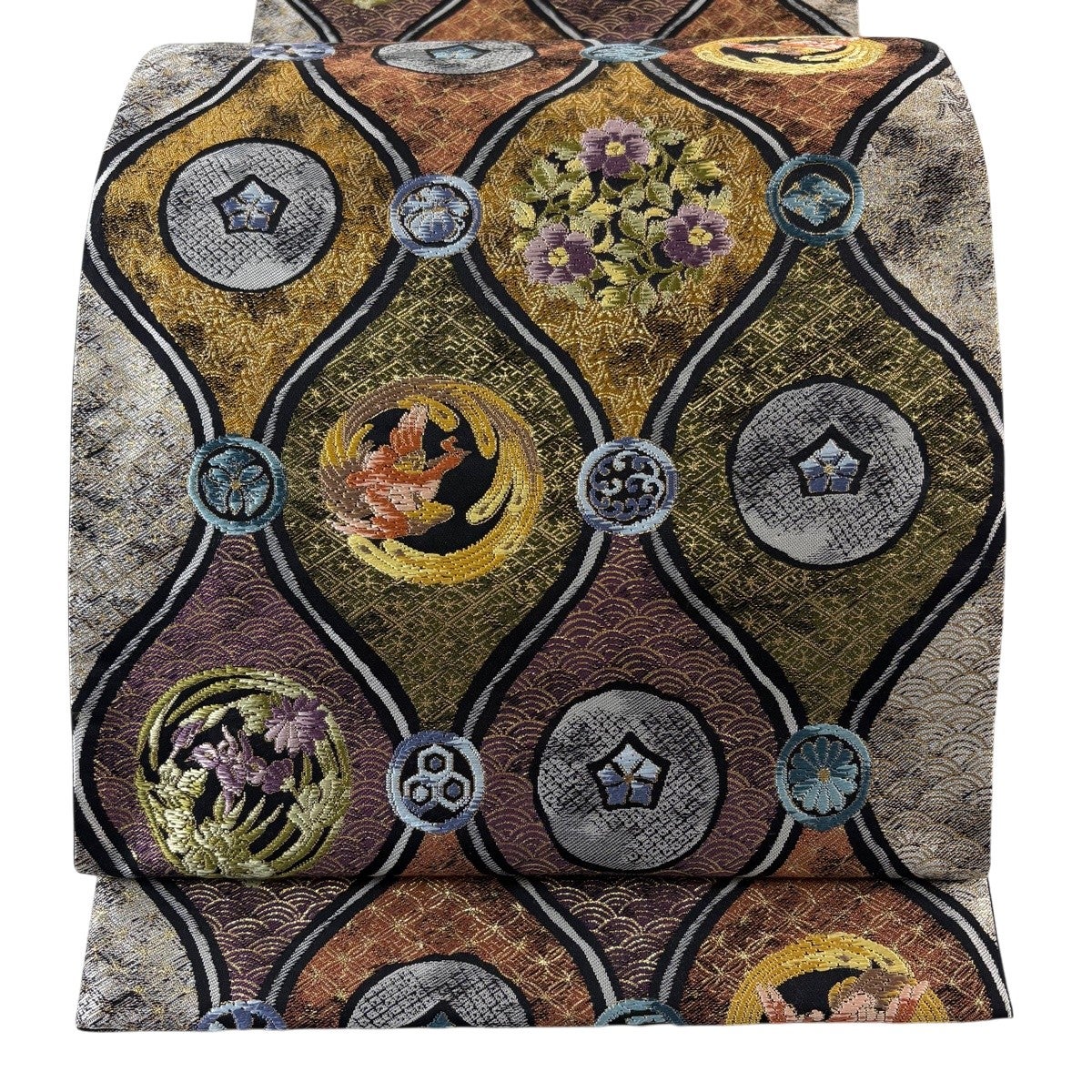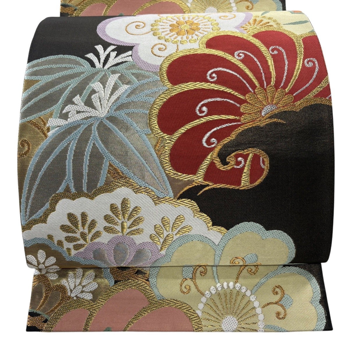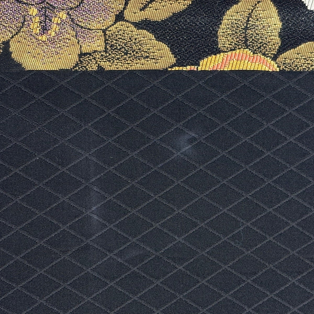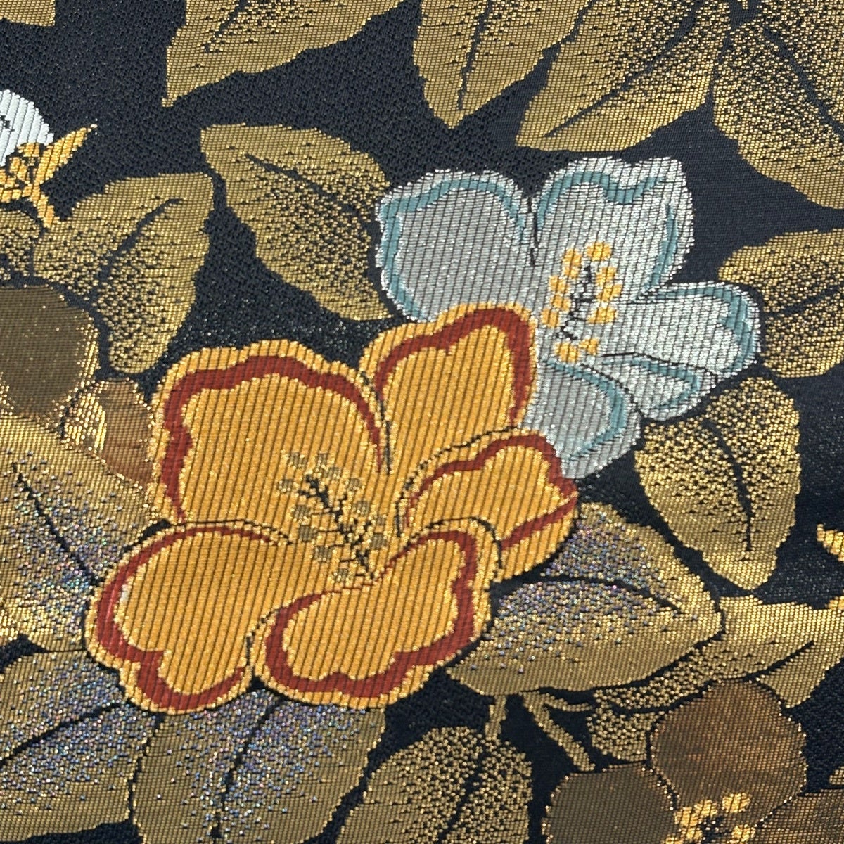 【美品】 袋帯 名品 草花 箔 金糸 墨色 六通 正絹