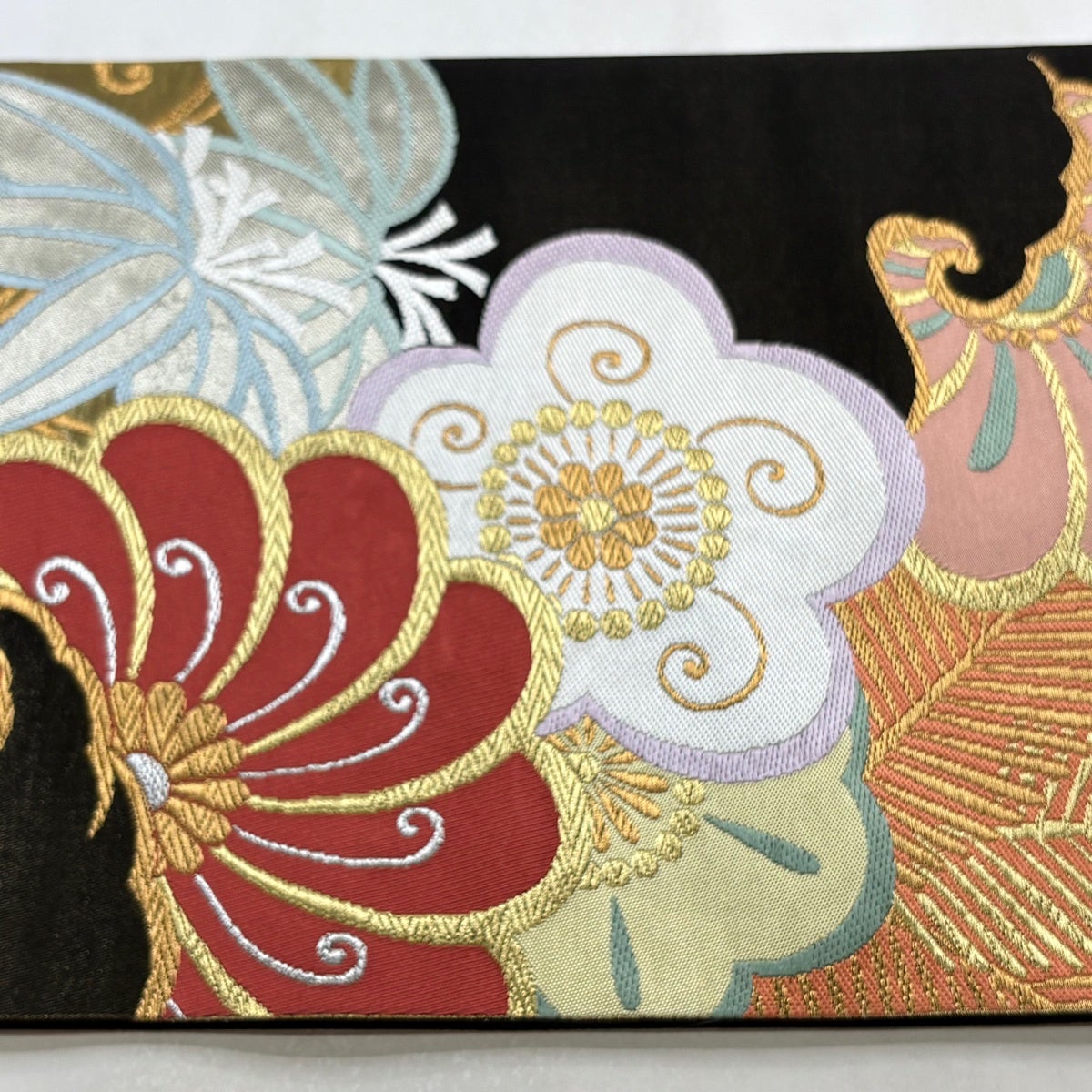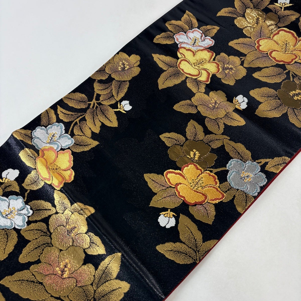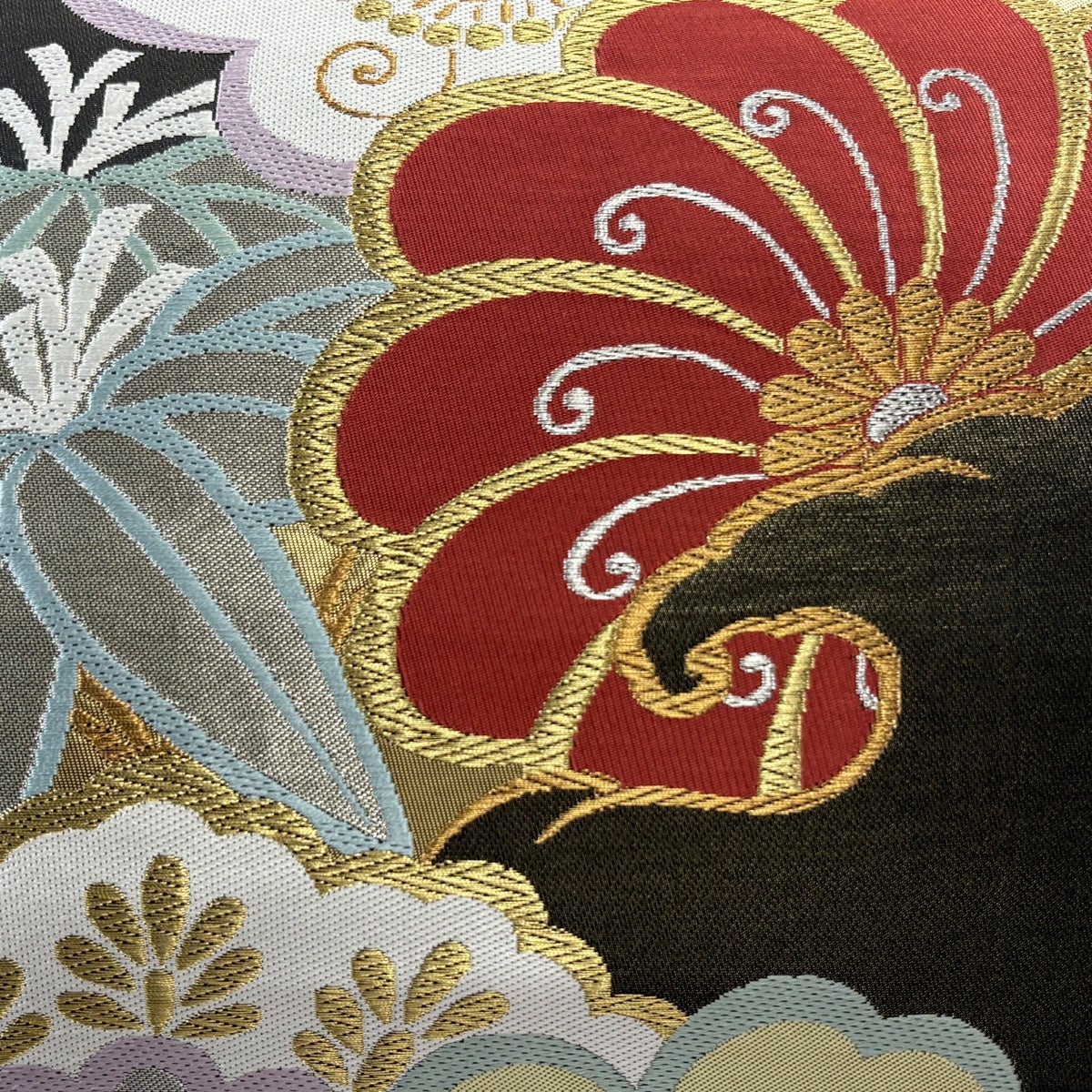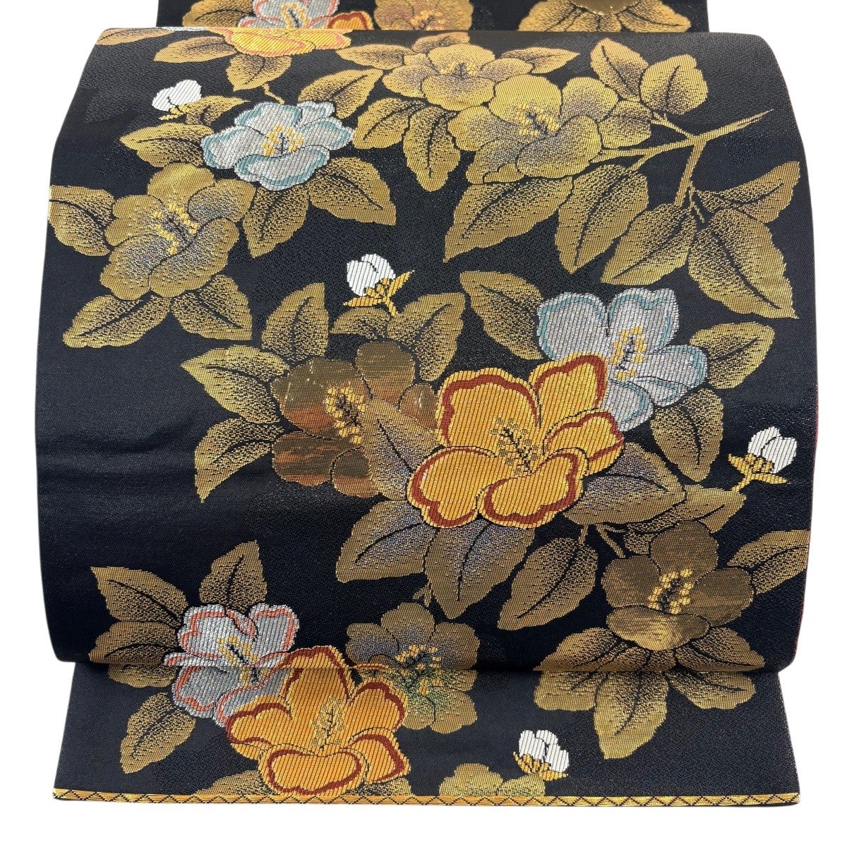 【美品】 袋帯 名品 草花 箔 金糸 墨色 六通 正絹
