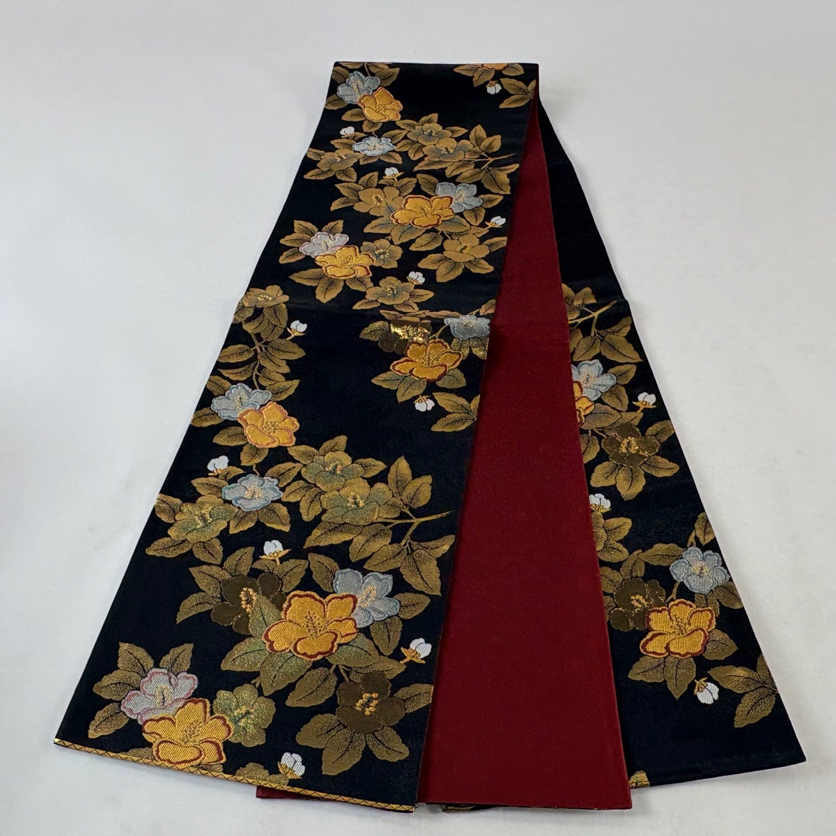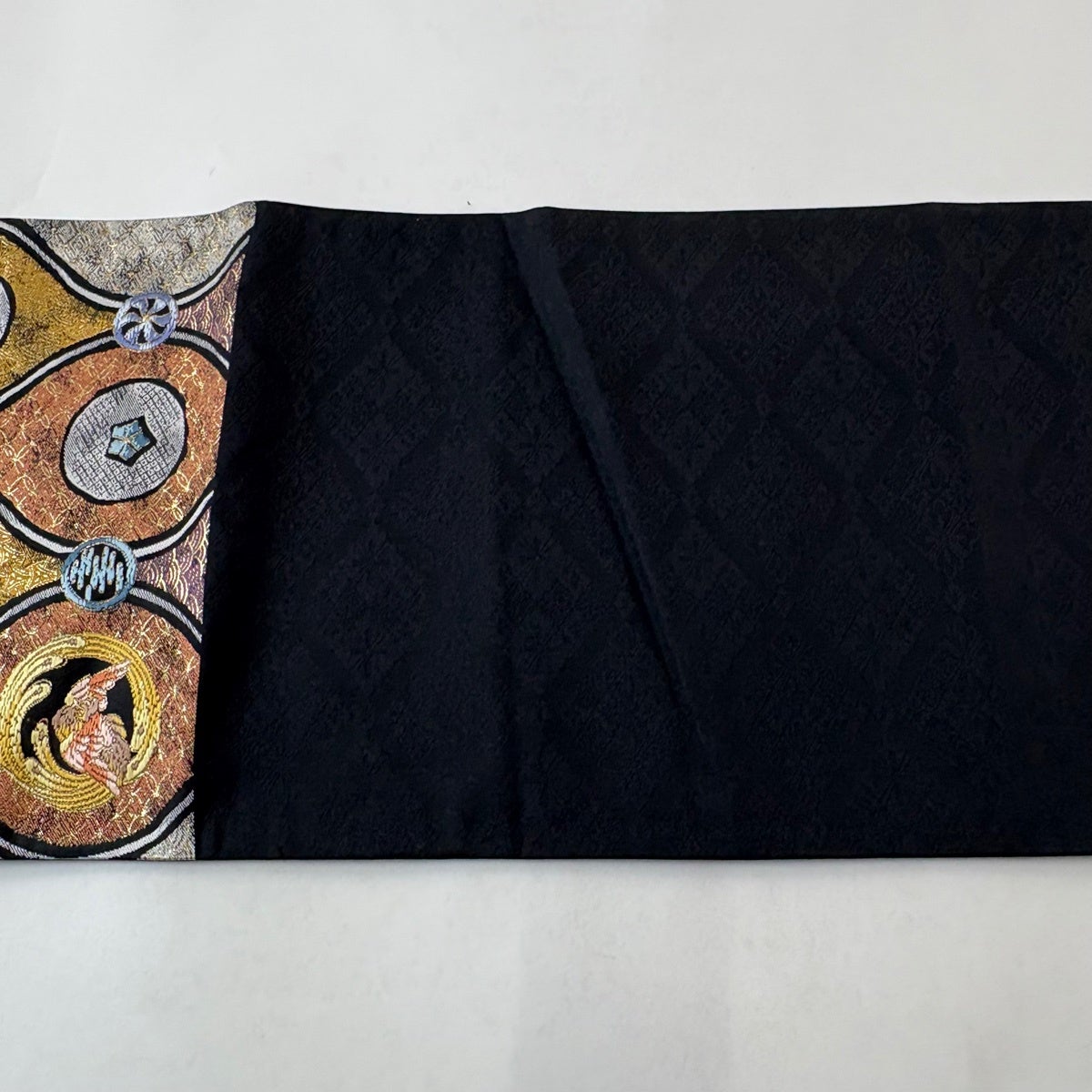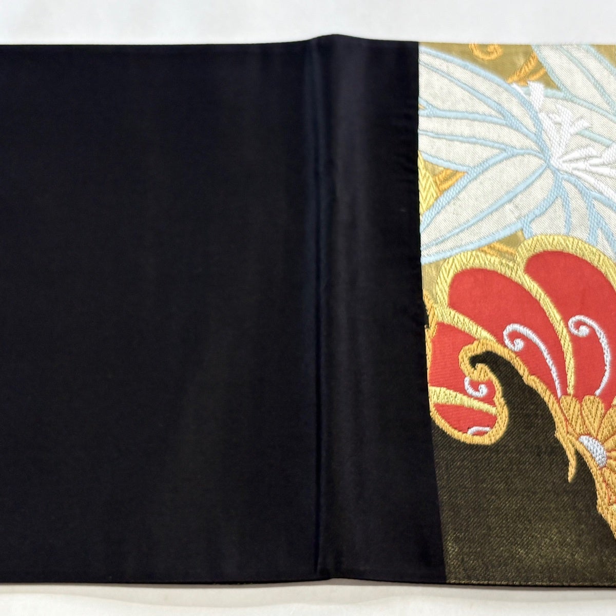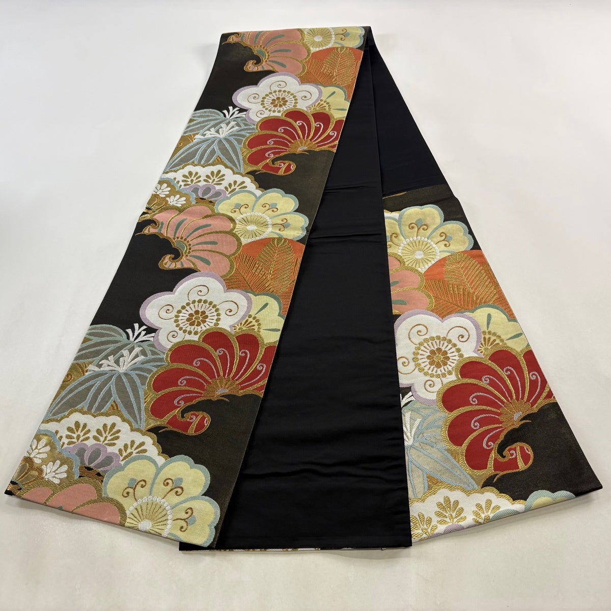 【美品】 袋帯 名品 草花 箔 金糸 墨色 六通 正絹