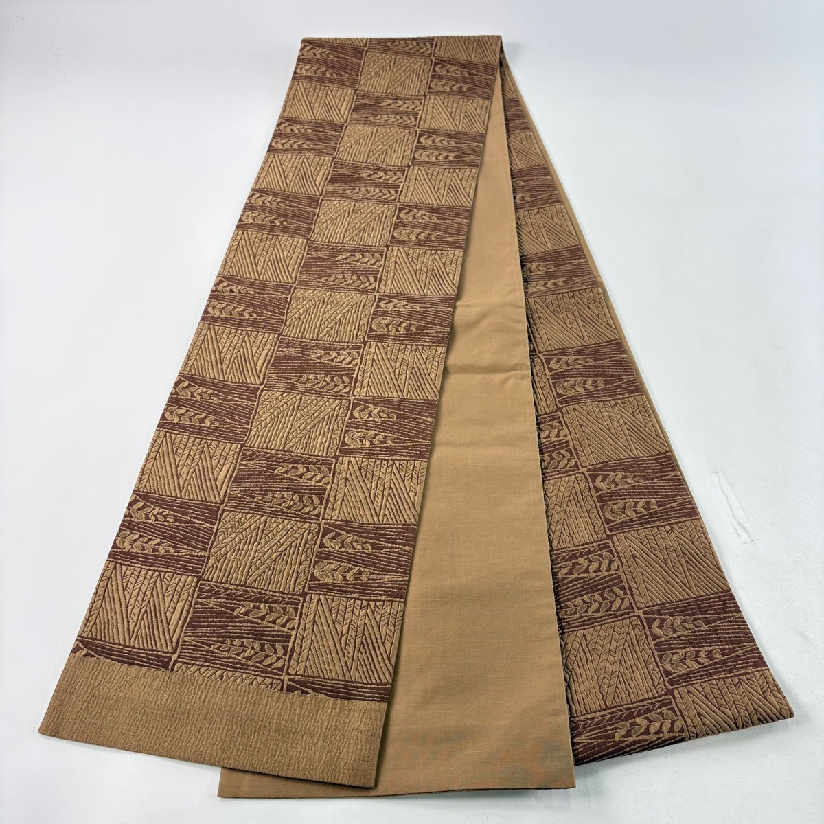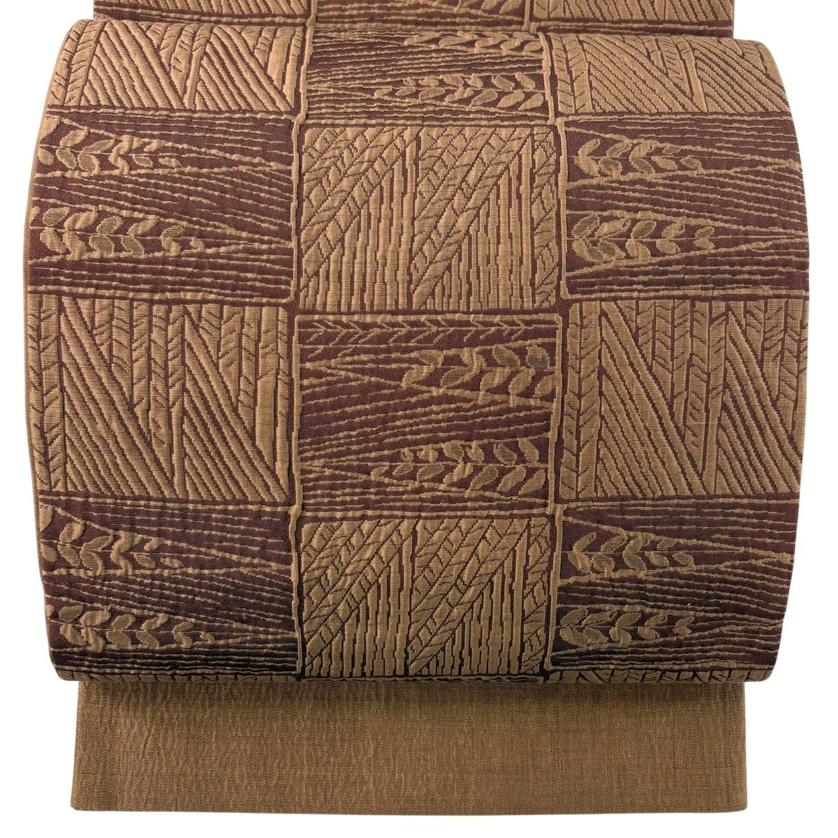 【美品】 袋帯 名品 幾何学 ベージュ 全通 正絹