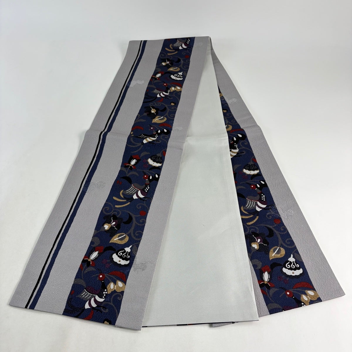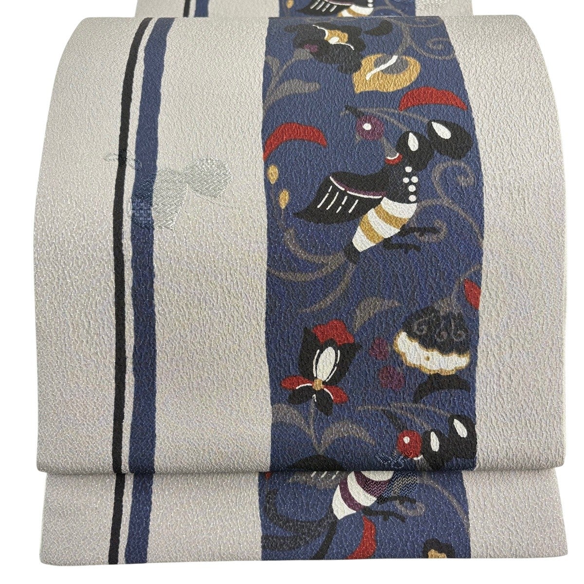 【美品】 袋帯 逸品 うさぎ 霞 箔 灰色 六通 正絹