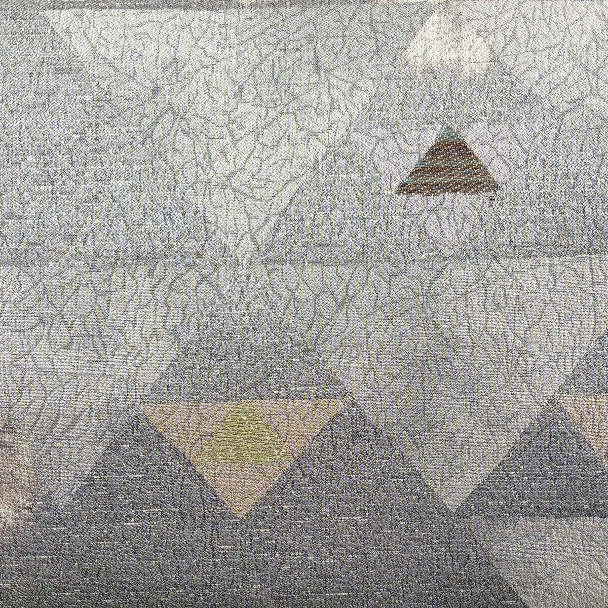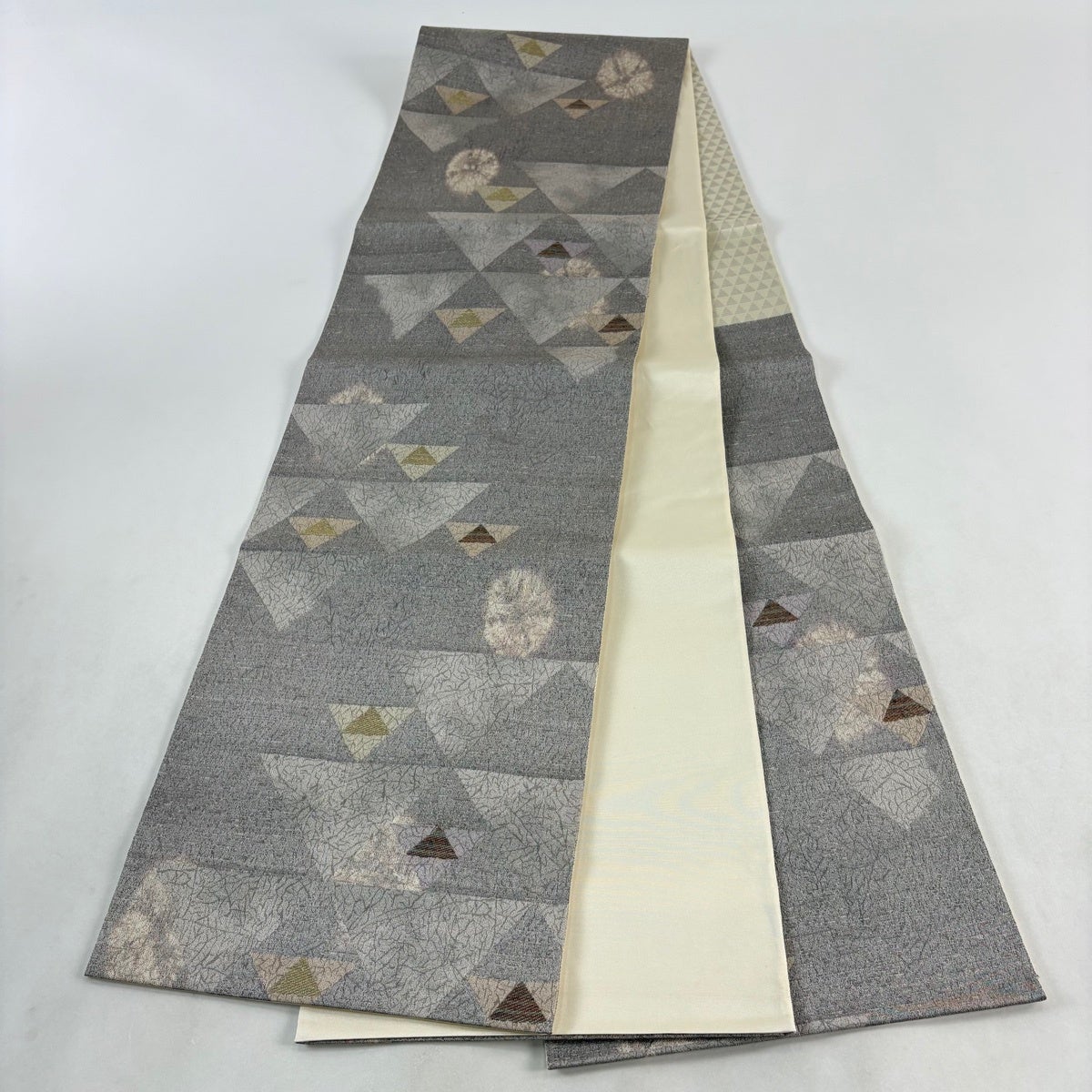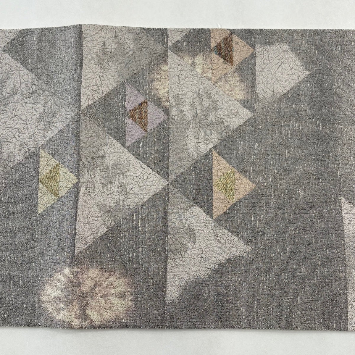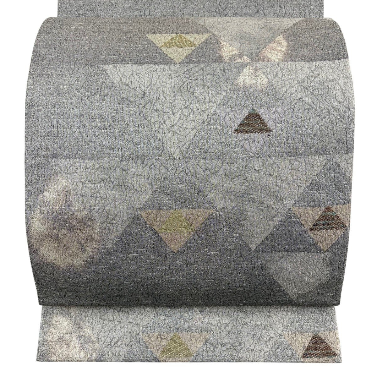【美品】 袋帯 秀品 幾何学 灰緑 全通 正絹