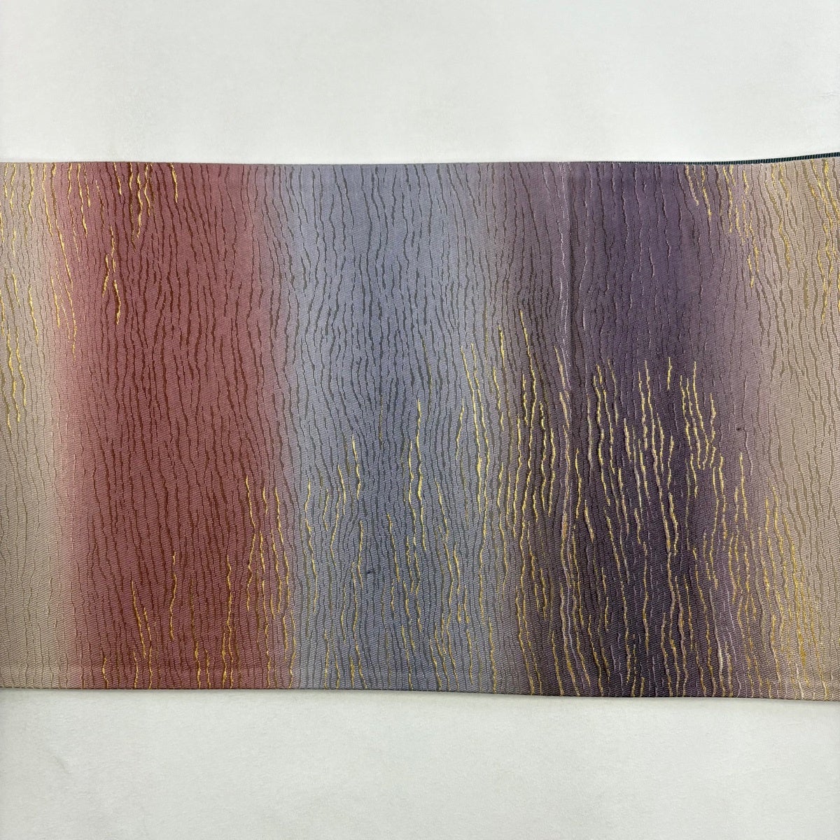 【美品】 袋帯 名品 霞 箔 灰紫 全通 正絹