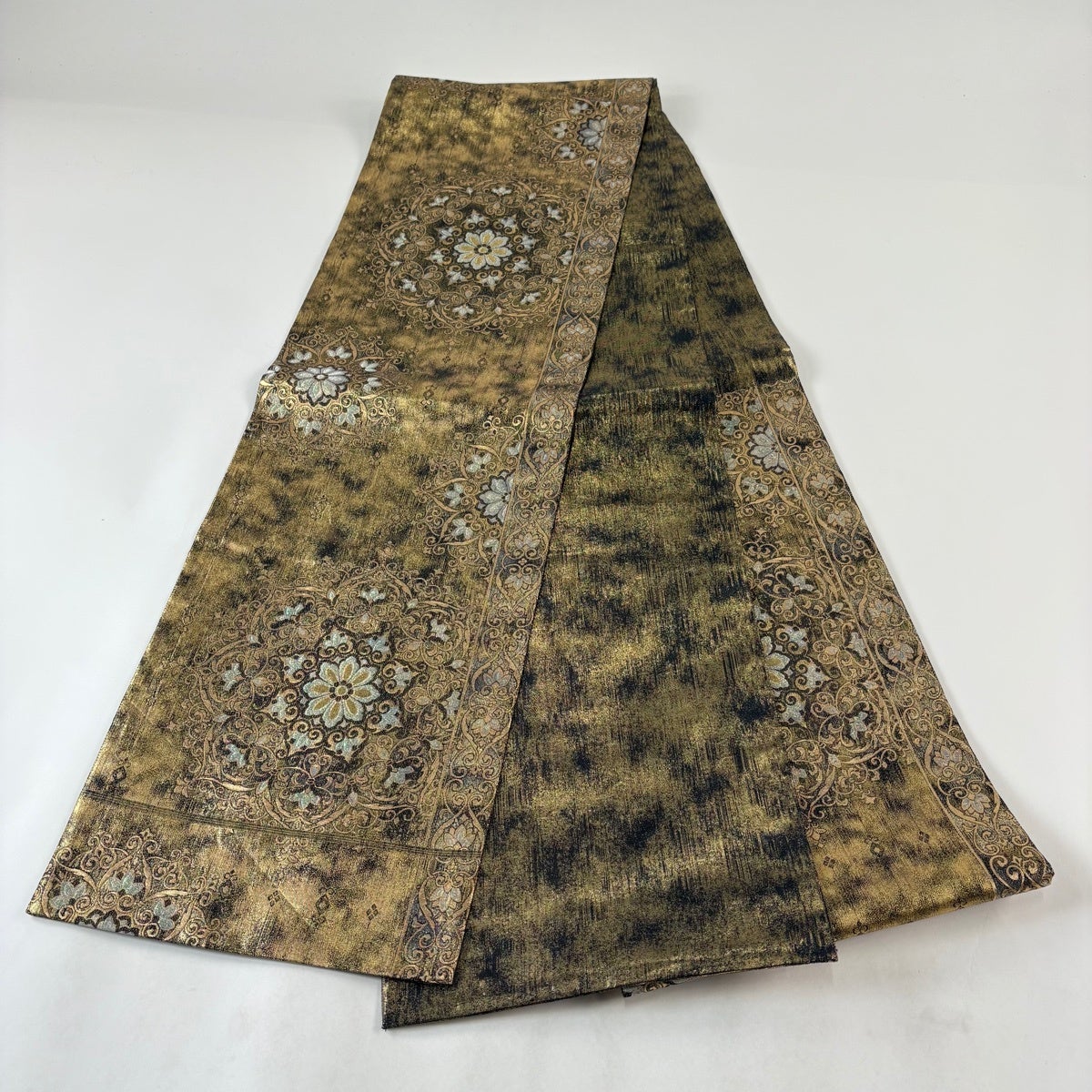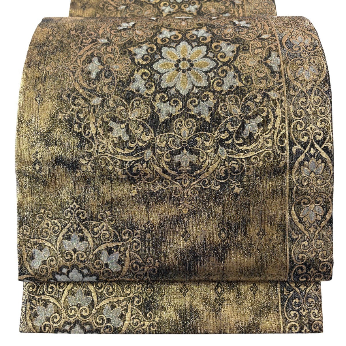 【美品】 袋帯 秀品 華文 箔 金色 六通 正絹