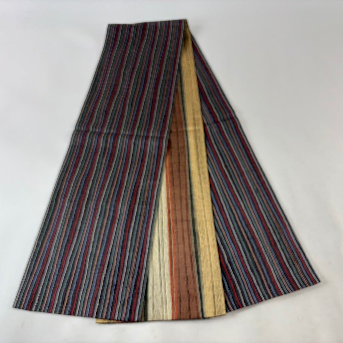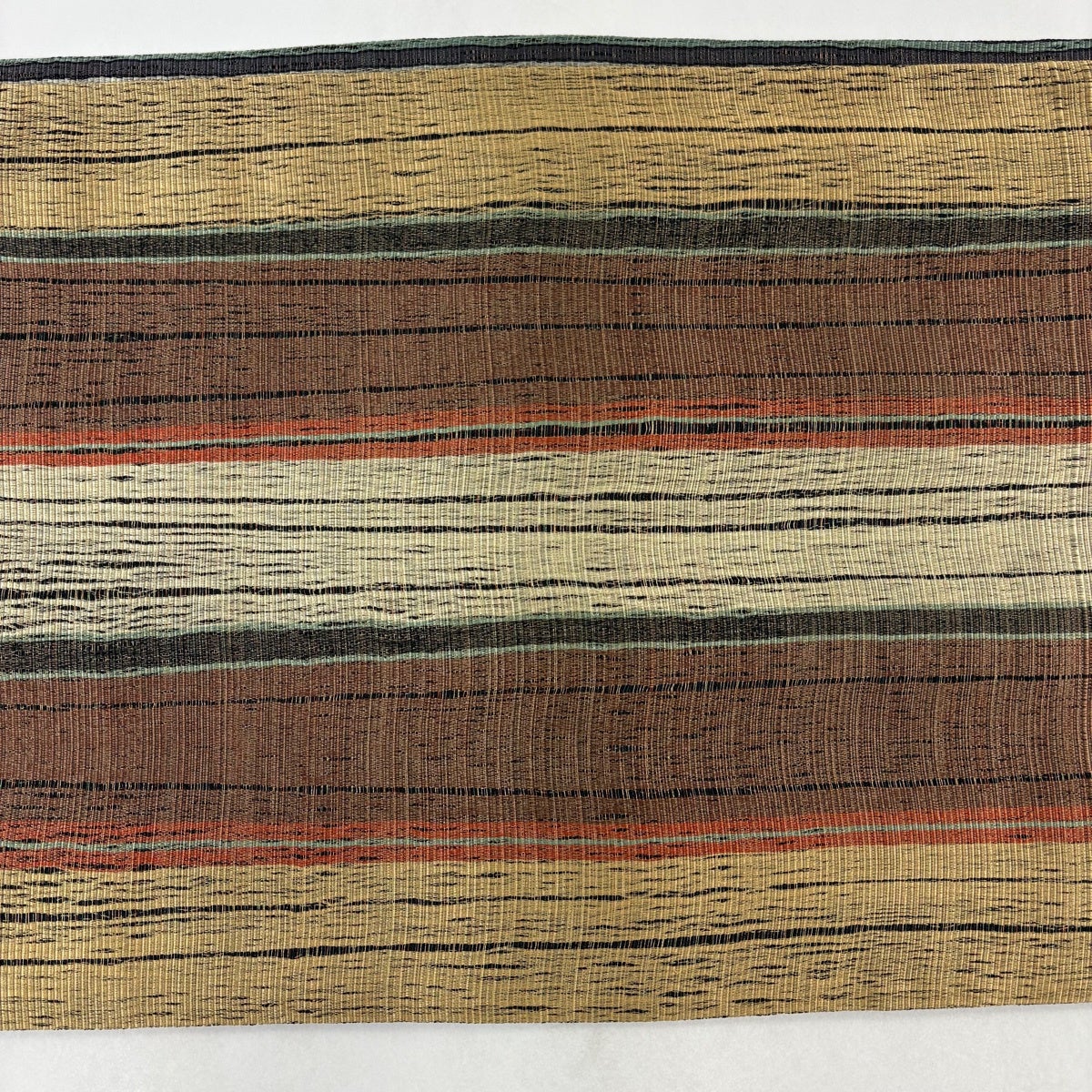 【美品】 袋帯 秀品 紬地 縞 赤茶 六通 正絹