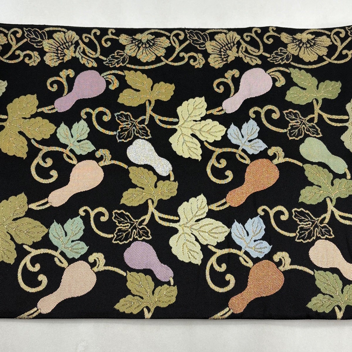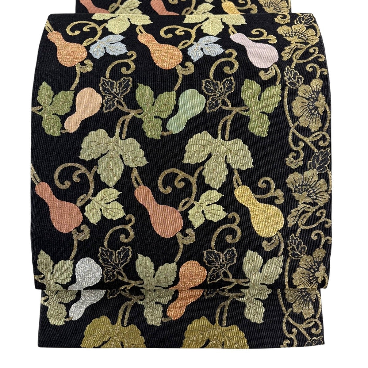 【美品】 袋帯 秀品 草花 金糸 箔 金色 お太鼓柄 正絹