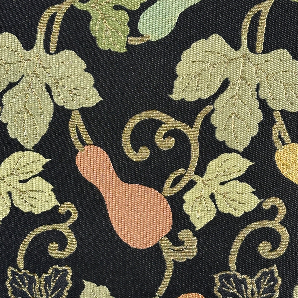 【美品】 袋帯 秀品 夏帯 花唐草 縞 墨色 六通 正絹