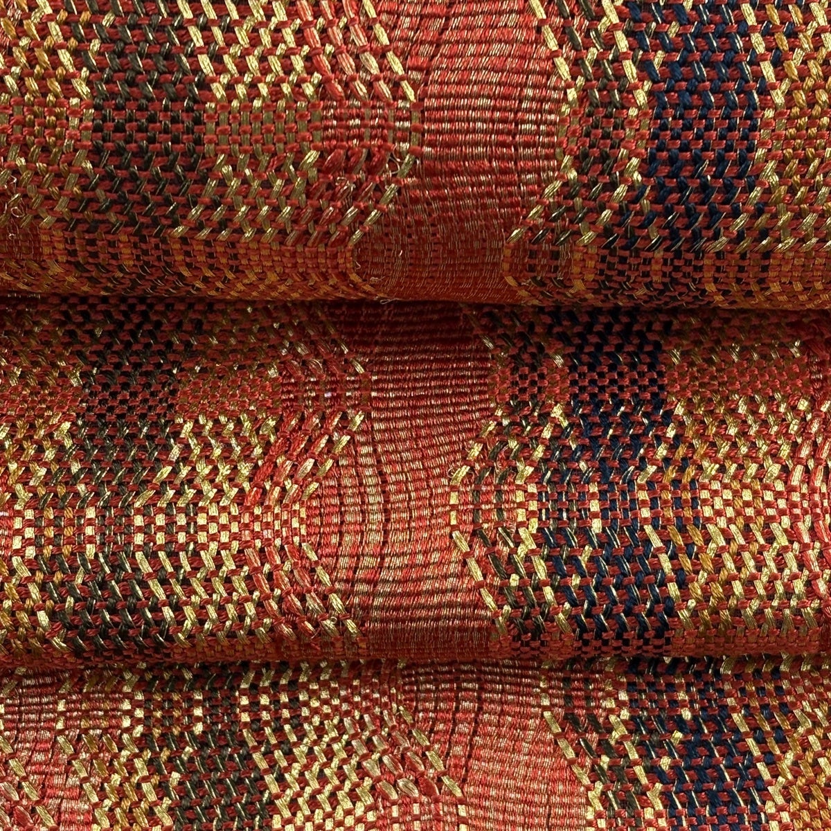 【美品】 袋帯 秀品 幾何学模様 金糸 箔 金色 全通 正絹