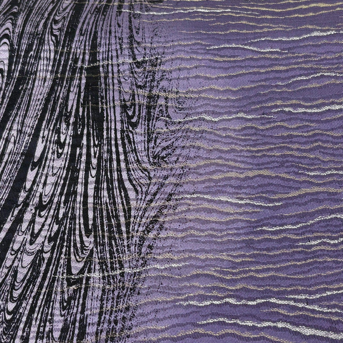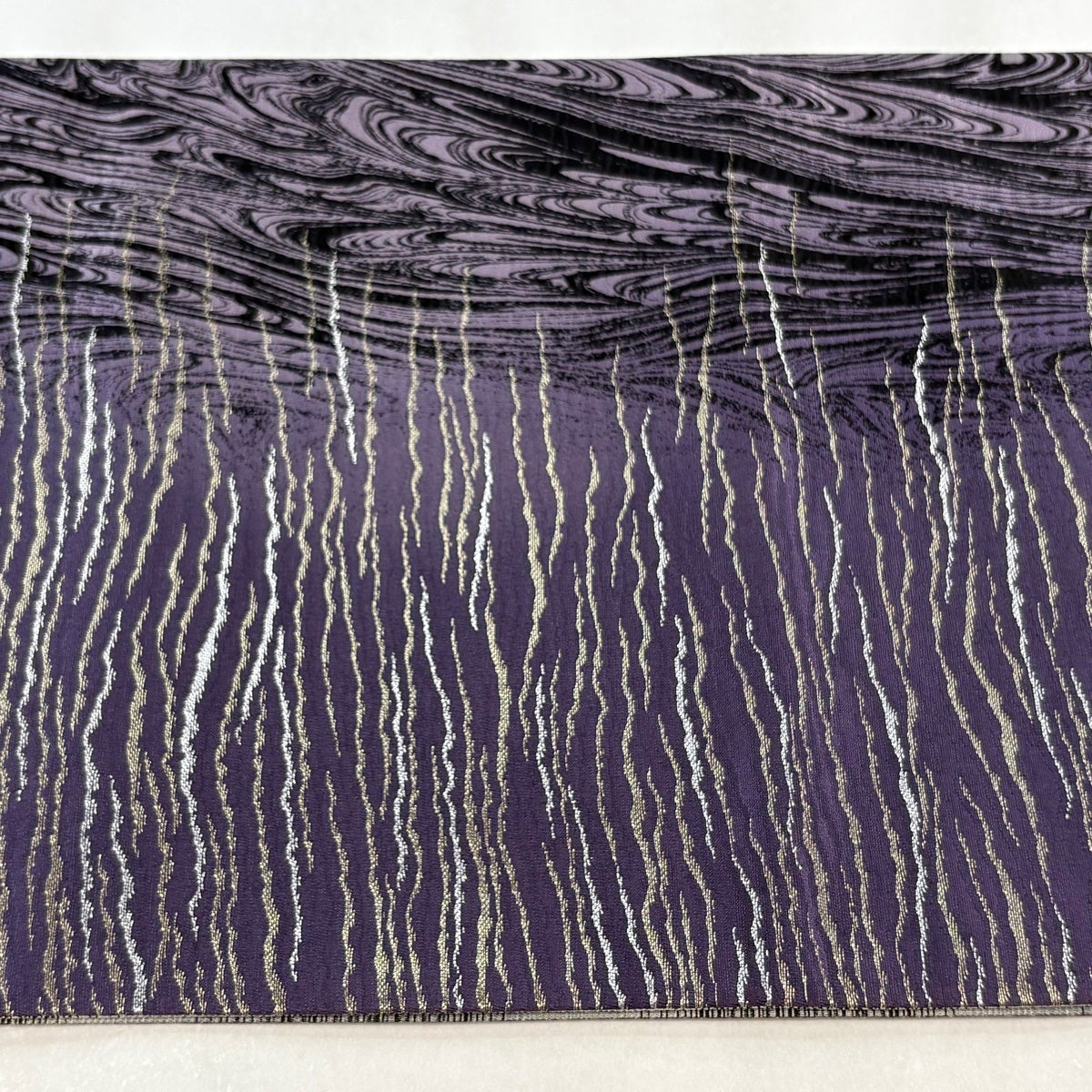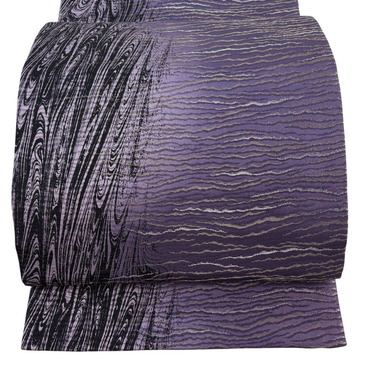 【美品】 袋帯 名品 幾何学模様 銀糸 箔 紫 全通 正絹