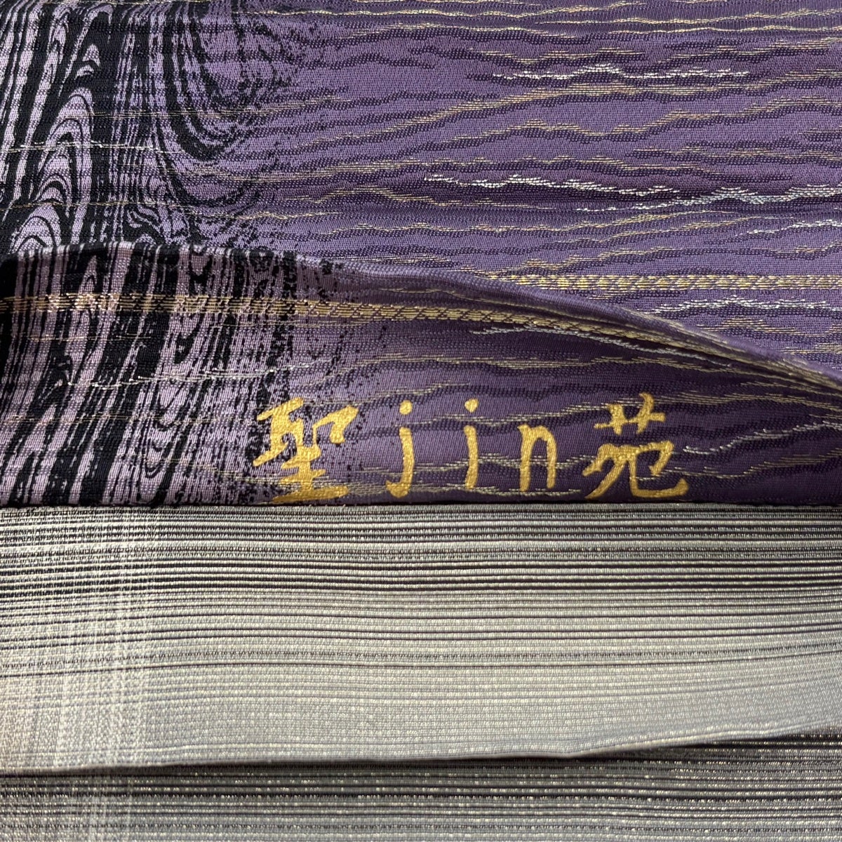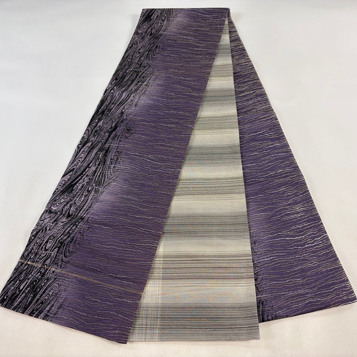 【美品】 袋帯 名品 落款あり 流水 銀糸 紫 全通 正絹