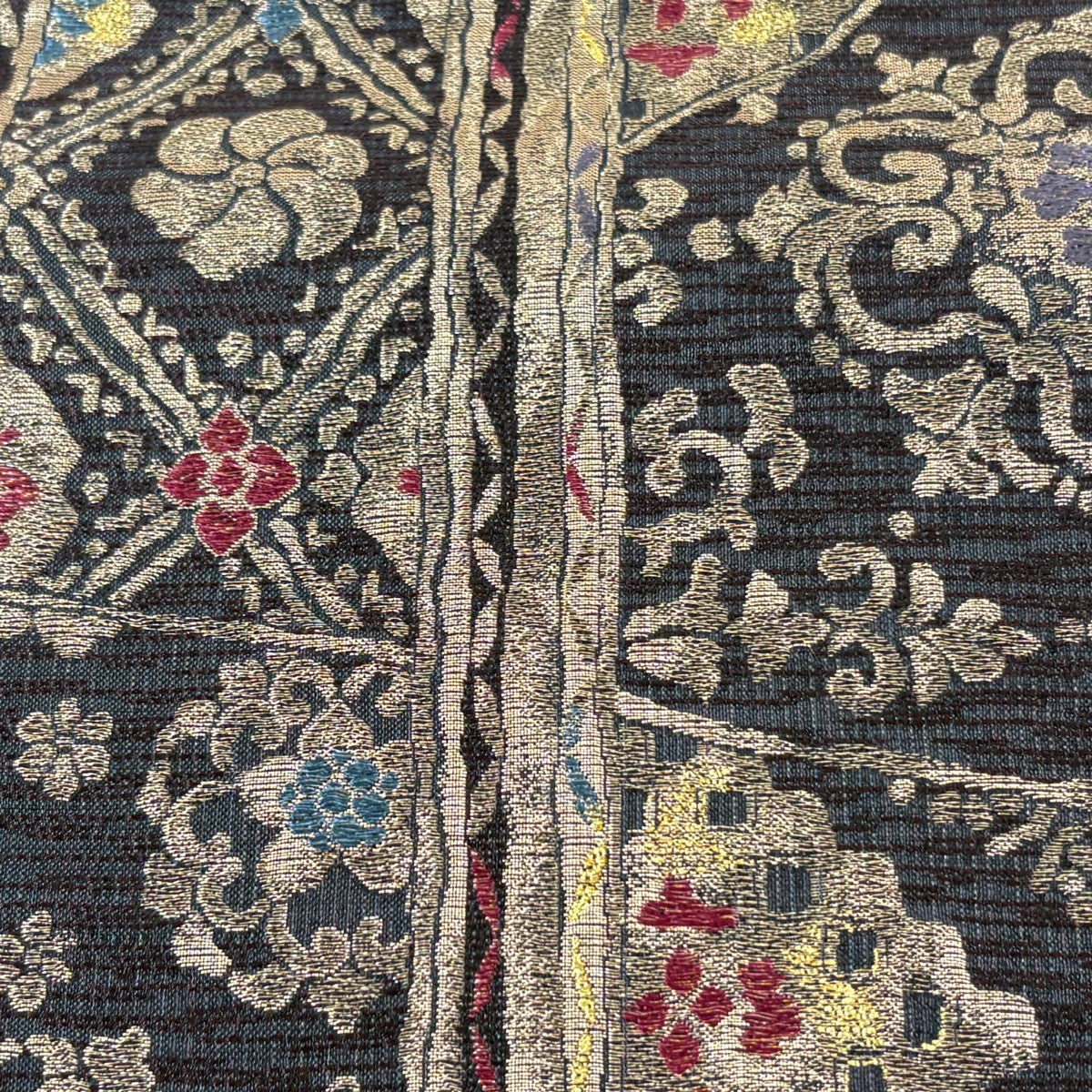 【美品】 袋帯 秀品 菊 波頭 唐織 箔 黒 六通 正絹